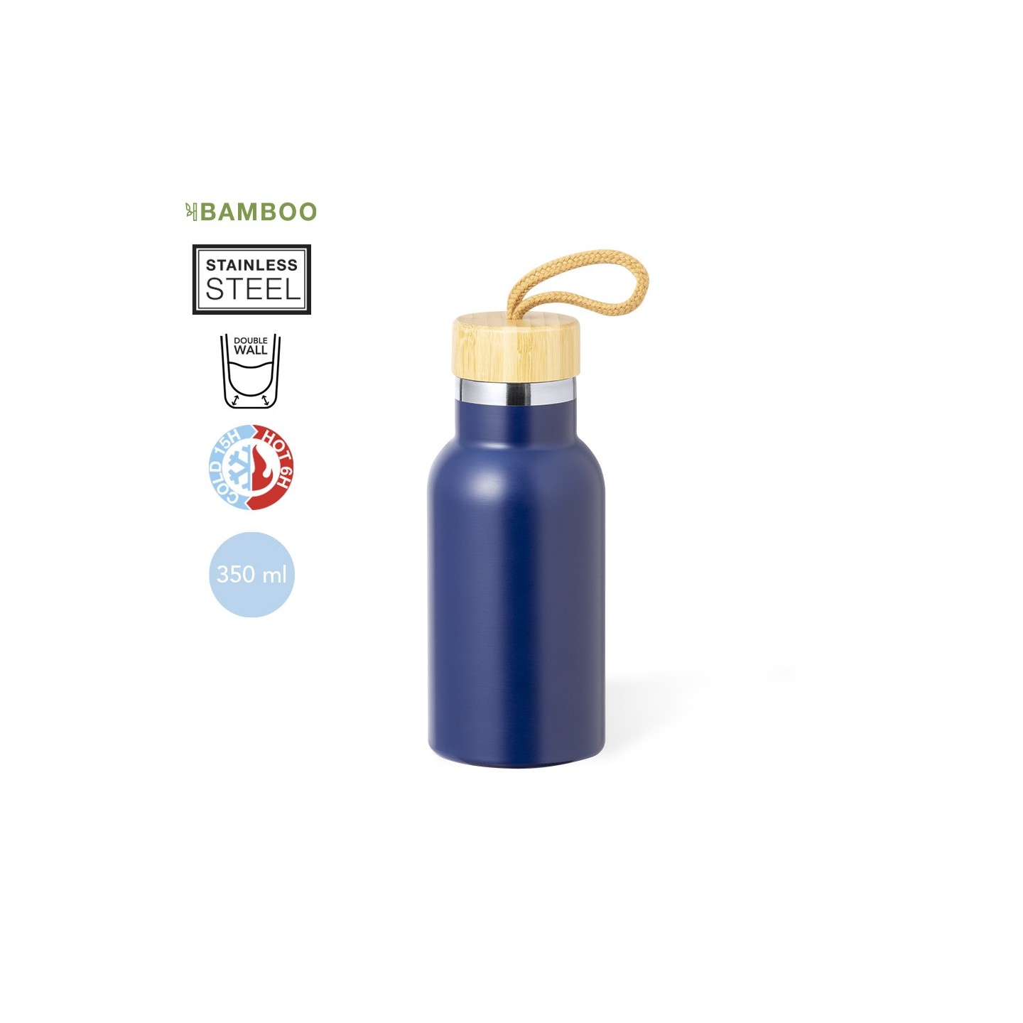 El Bidón Térmico Flazer es de 350 ml, acero inox, tapón de bambú. Estilo y funcionalidad en variedad de colores. Ideal para regalos corporativos.