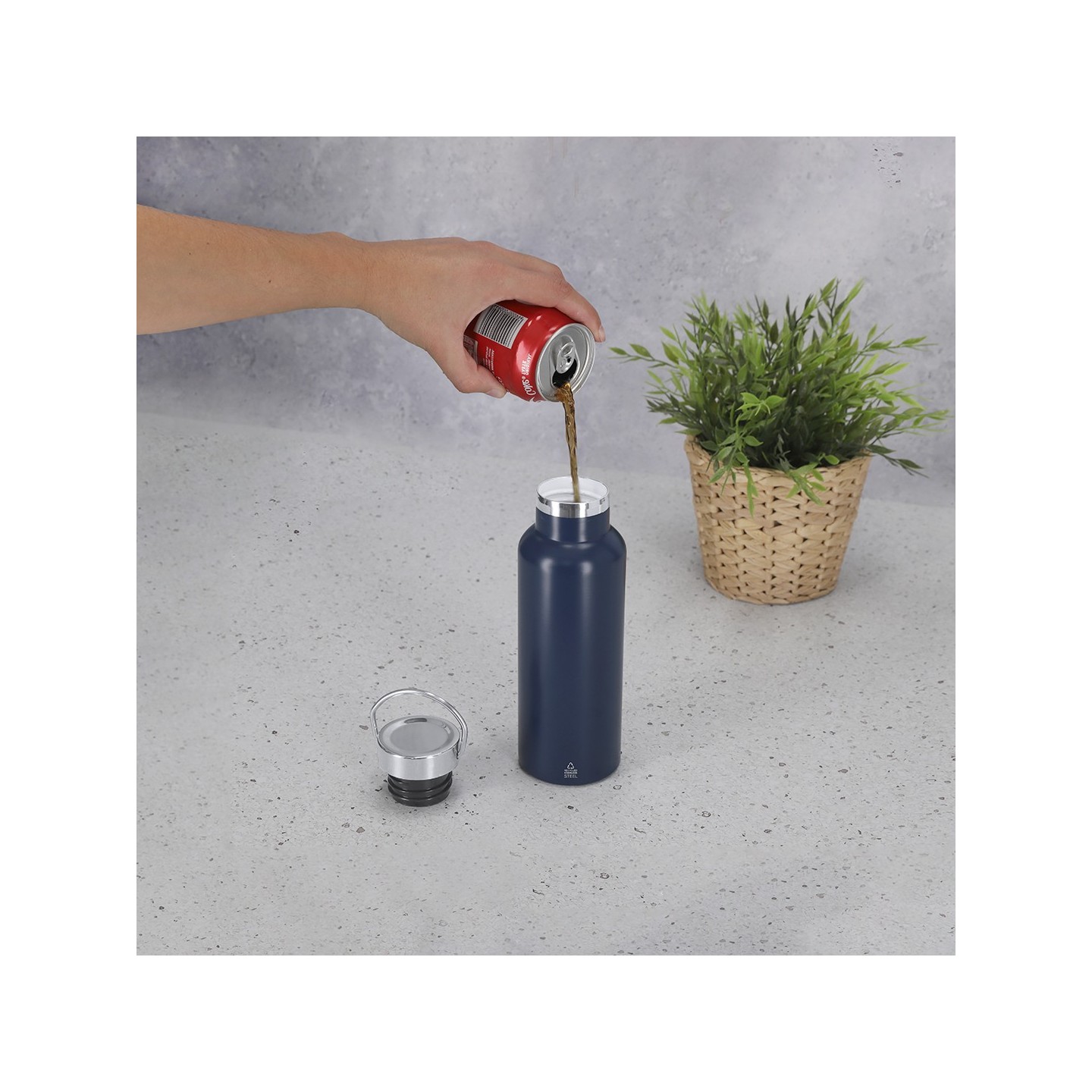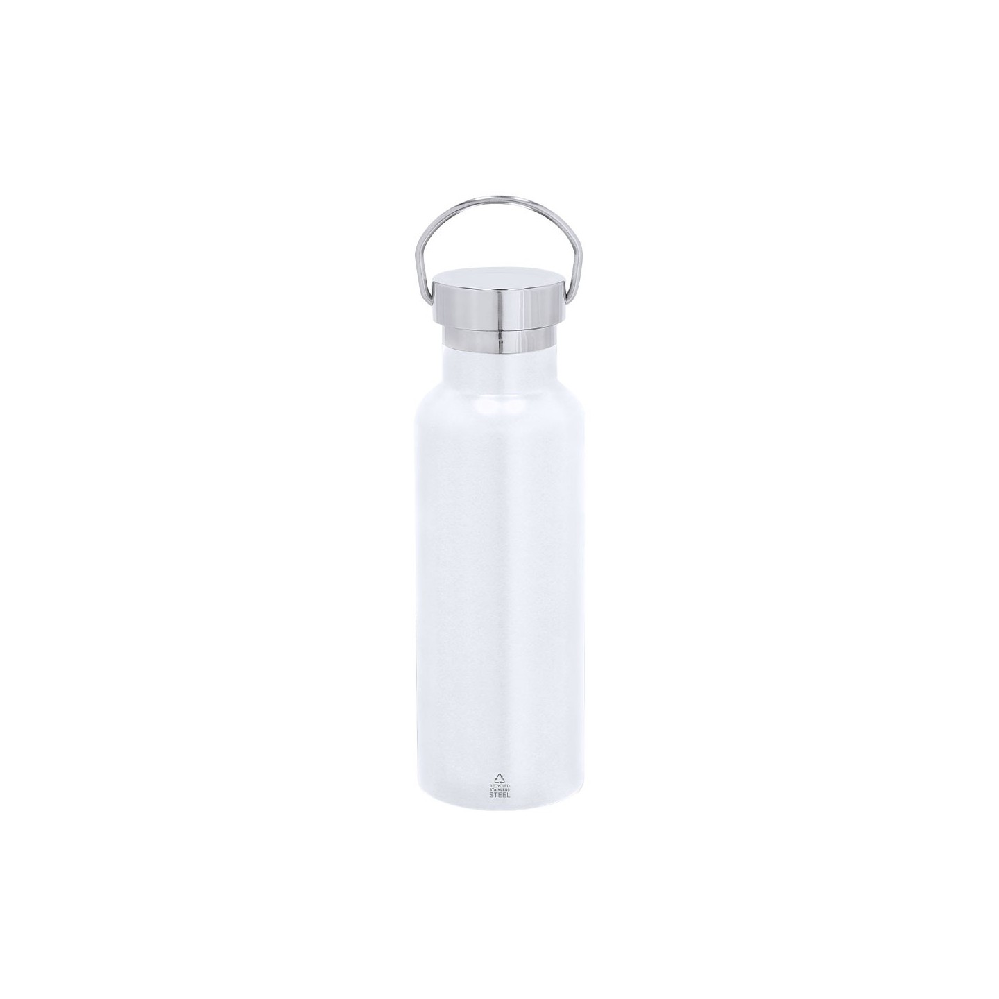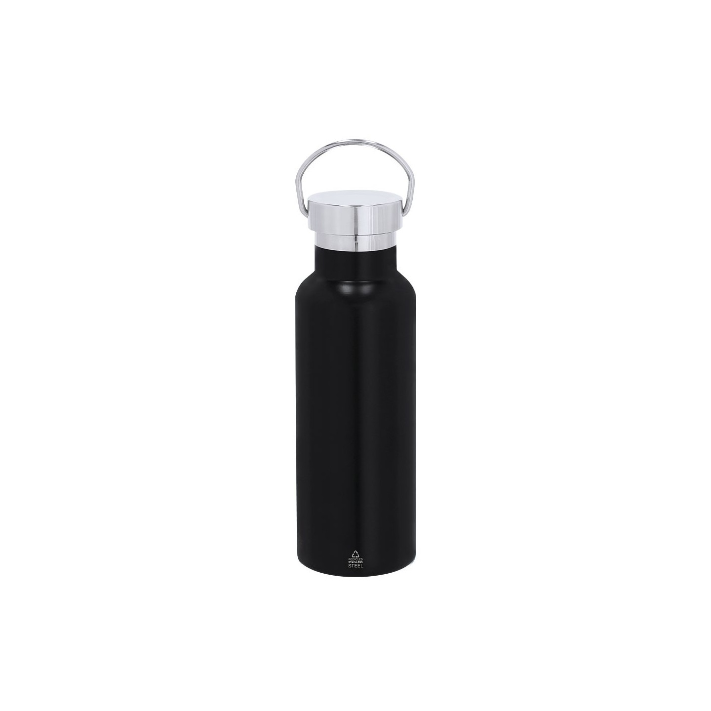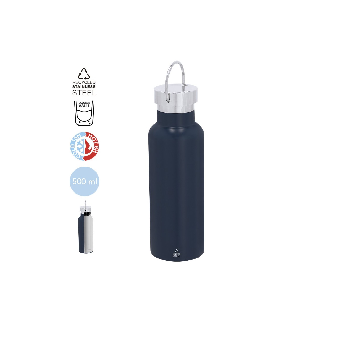 Bidón térmico de acero inoxidable reciclado de 500 ml. Conserva temperaturas por 15 horas frías y 6 horas calientes. Personalizable con tu logotipo.