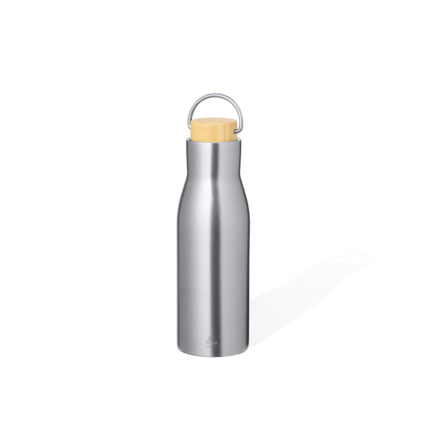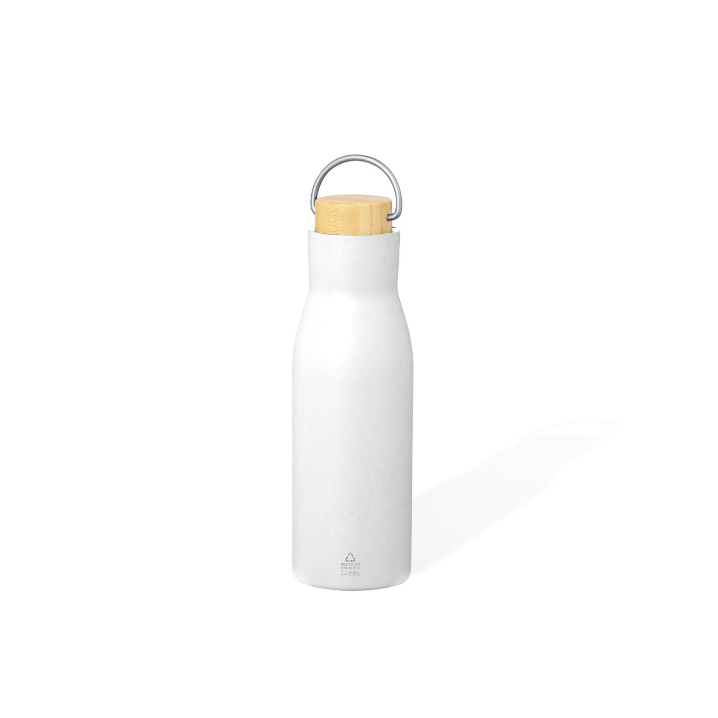 Su diseño innovador incluye un tapón a rosca elaborado en acero inoxidable, con un detalle distintivo de bambú que añade un toque de estilo y distinción. Además, cuenta con un práctico asa integrada que facilita su transporte, siendo ideal para llevarlo contigo a todas partes.