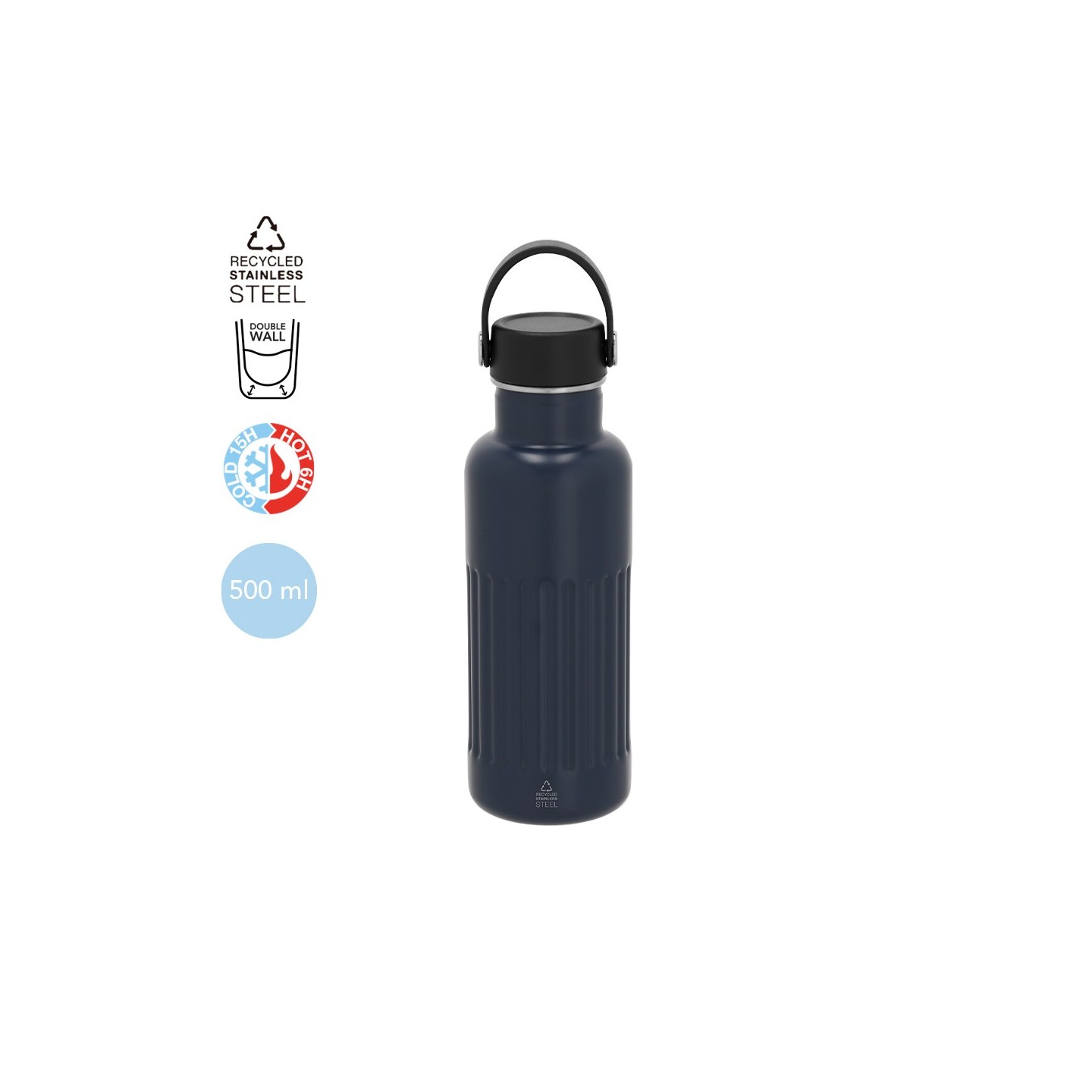 Bidón Térmico WELKER de 500 ml, acero inoxidable reciclado. Mantiene bebidas frías 15h y calientes 6h. Personalizable con tu logotipo. Acabado biselado mate.