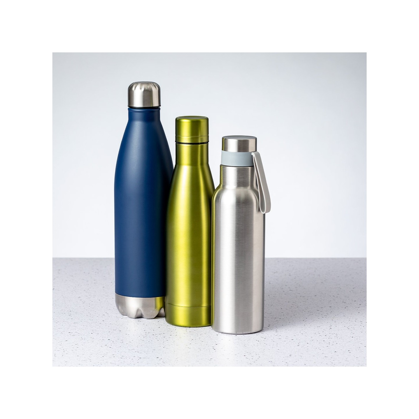 • Botellas: Disponibles en materiales como plástico (PET), acero inoxidable, vidrio y aluminio. Cada material ofrece ventajas específicas, desde la ligereza del plástico hasta la durabilidad del acero inoxidable.