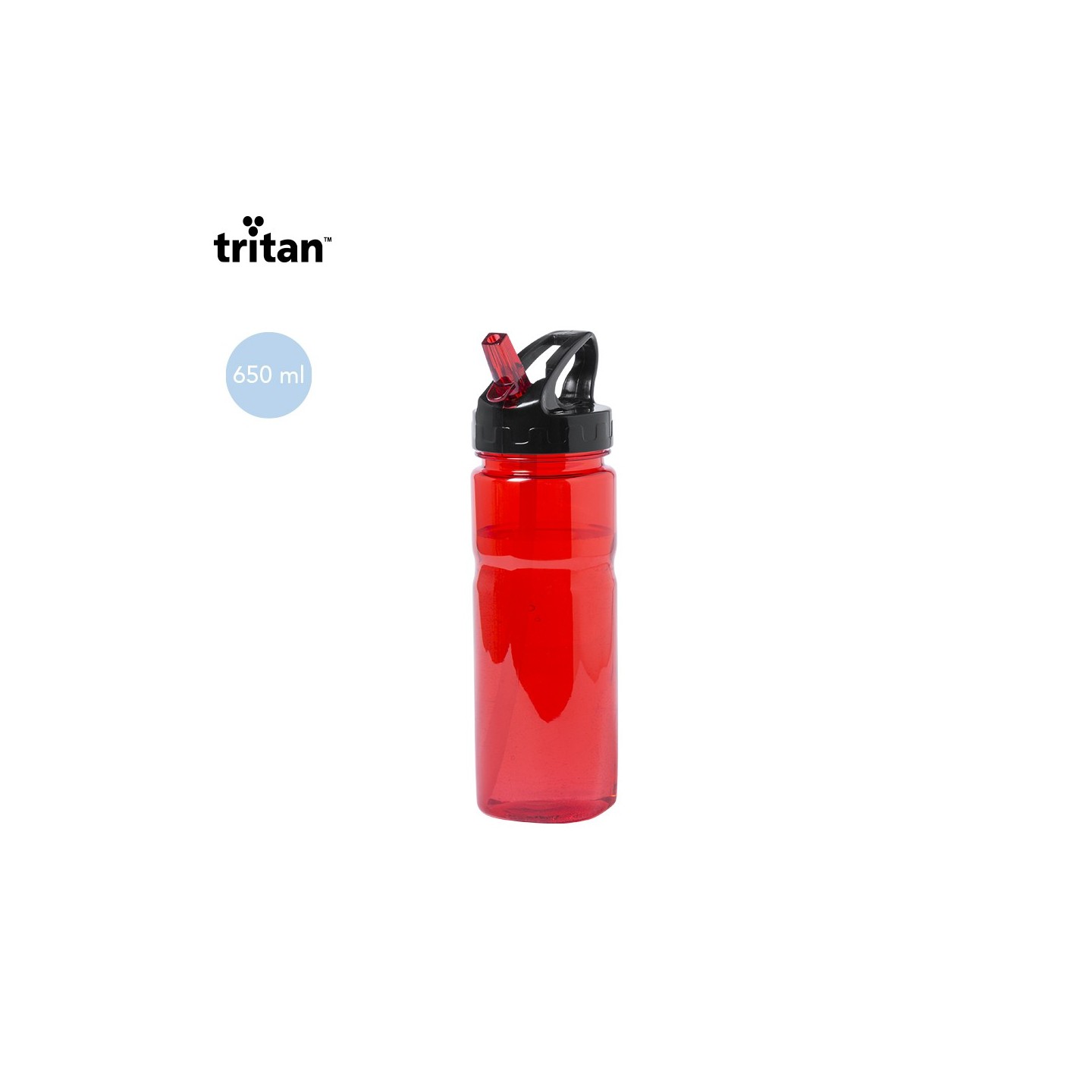 Bidón Vandix de 650ml en material tritán resistente al calor y libre de BPA. Con dosificador, tapón seguro y presentación en caja individual.