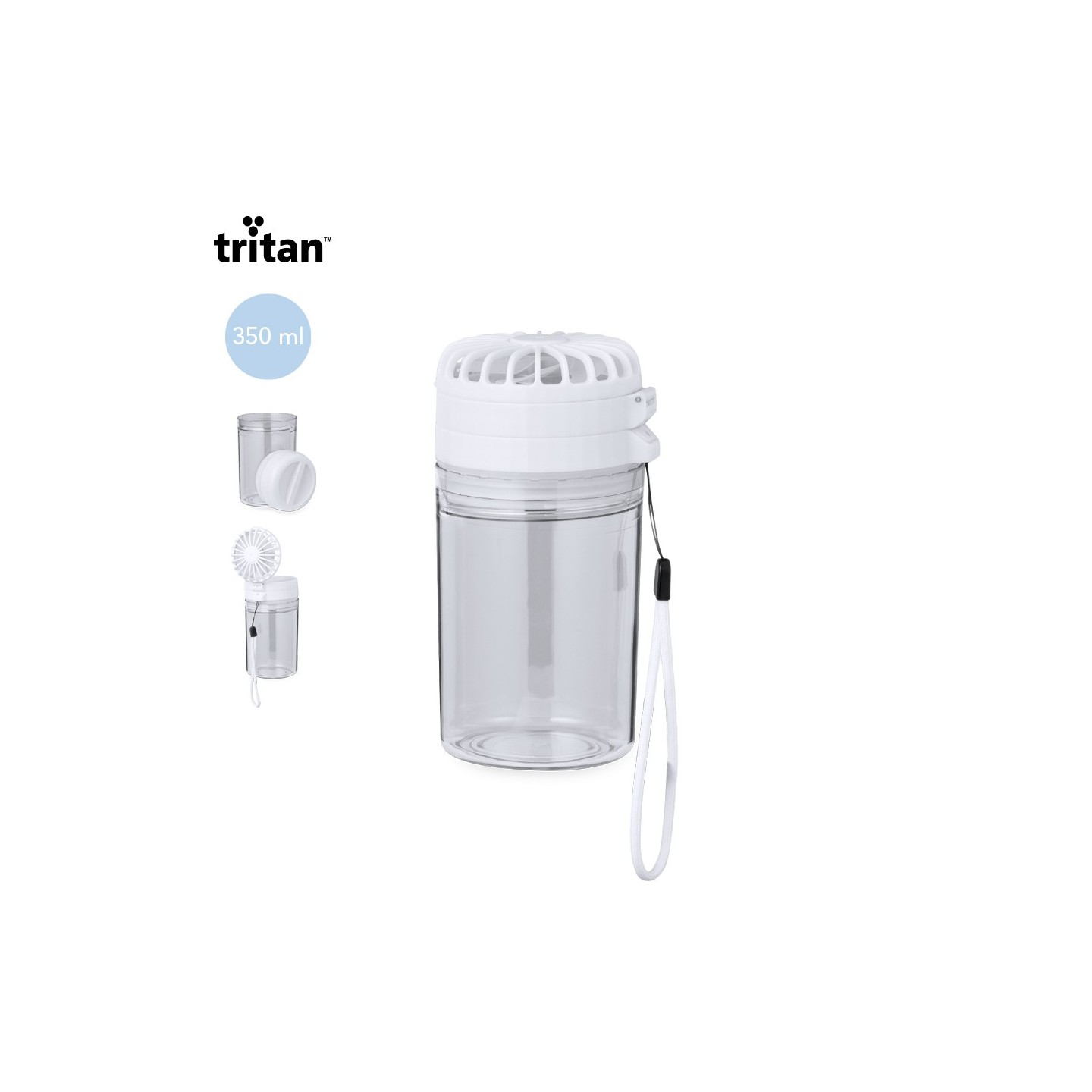El Bidón Ventilador Zexen es de 350 ml de frescura con ventilador integrado ajustable. Personalizable para destacar tu marca.