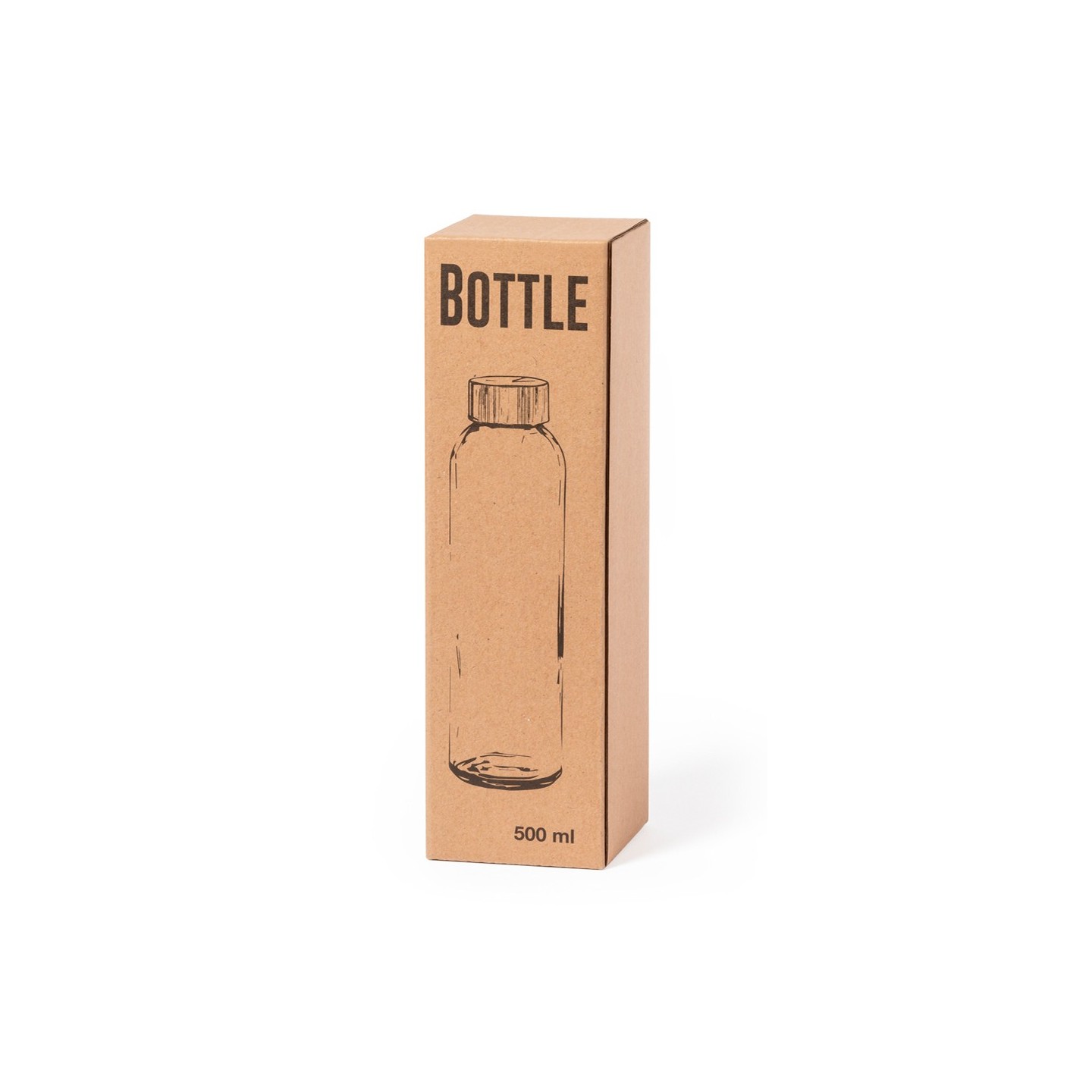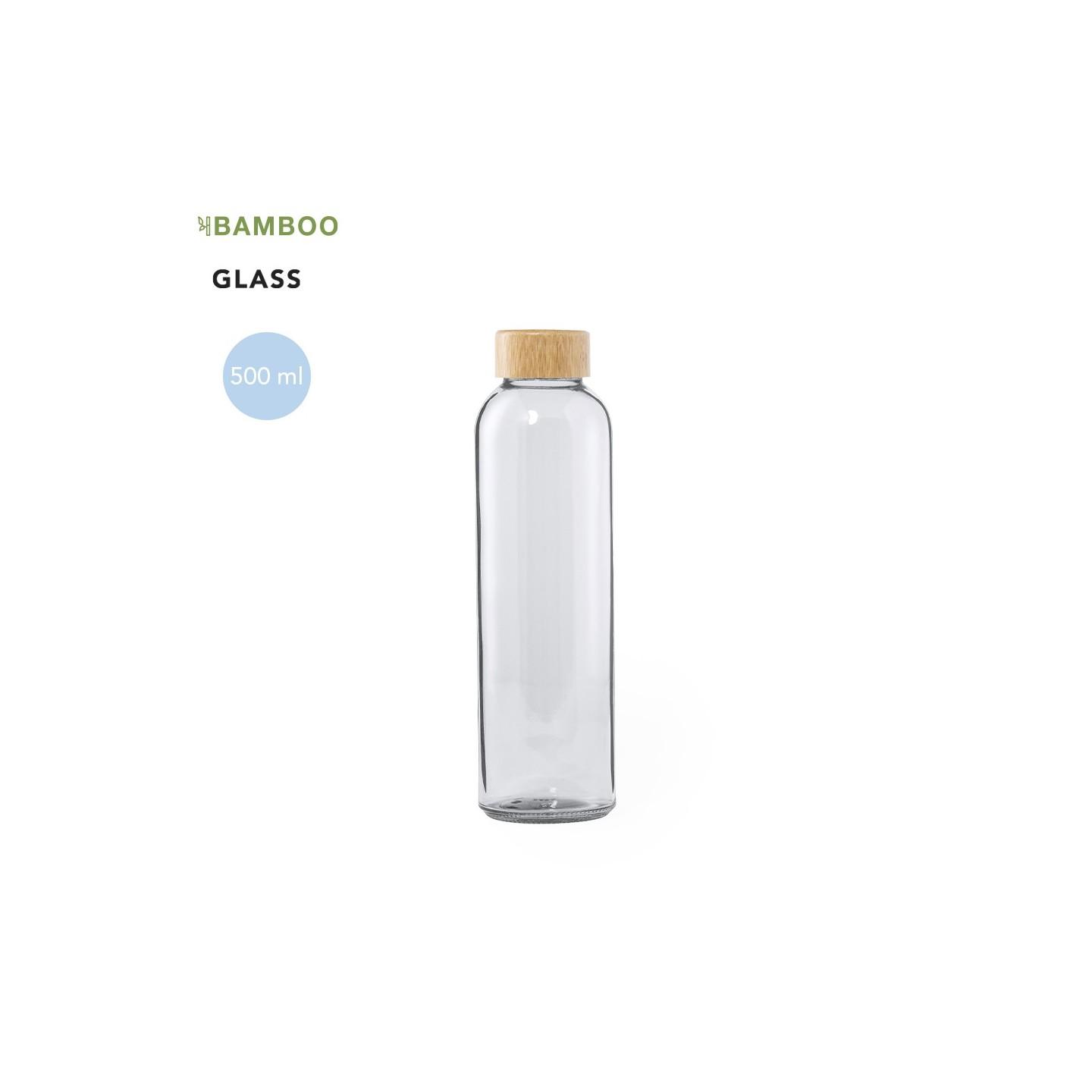 Hidratación y estilo se fusionan en el Bidón Yonsol de cristal de 500 ml. Tapón de bambú, libre de BPA y presentado en caja de diseño kraft.