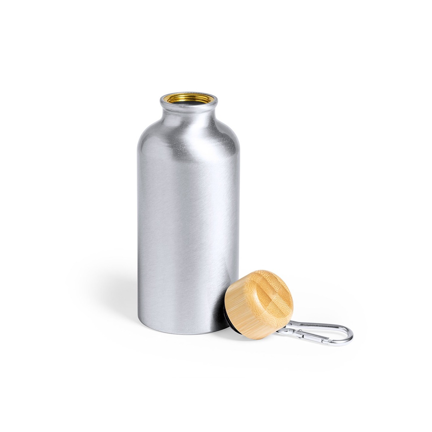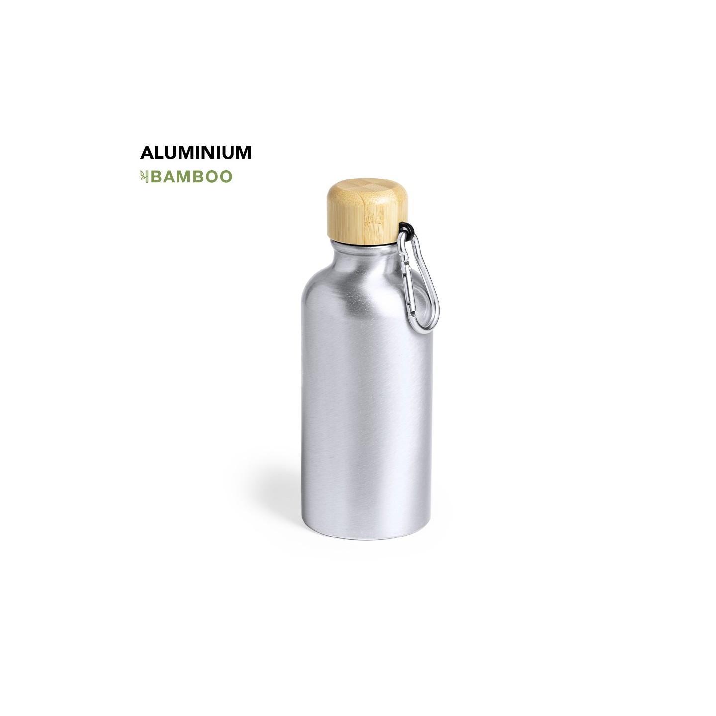 El Bidón Yorix de 400 ml viene con cuerpo de aluminio mate y tapón de bambú, es la mezcla ideal de estilo, funcionalidad y sostenibilidad para regalos corporativos excepcionales.