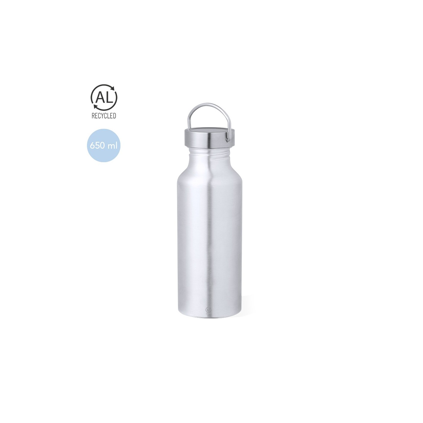 Este bidón, con una capacidad de 650 ml, es una opción elegante y funcional para mantener tus bebidas favoritas siempre a mano. Fabricado en Aluminio Reciclado de acabado brillo, combina estilo y conciencia ambiental en un solo producto.