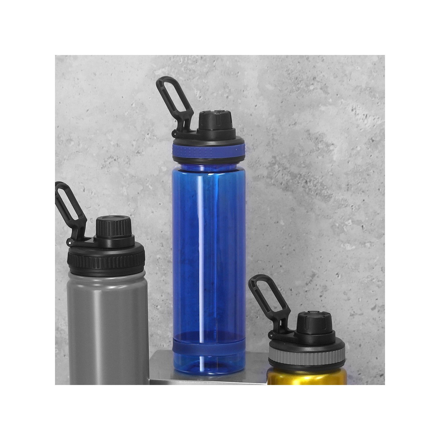 - Botellas: Disponibles en materiales como plástico (PET), acero inoxidable, vidrio y aluminio. Cada material ofrece ventajas específicas, desde la ligereza del plástico hasta la durabilidad del acero inoxidable.