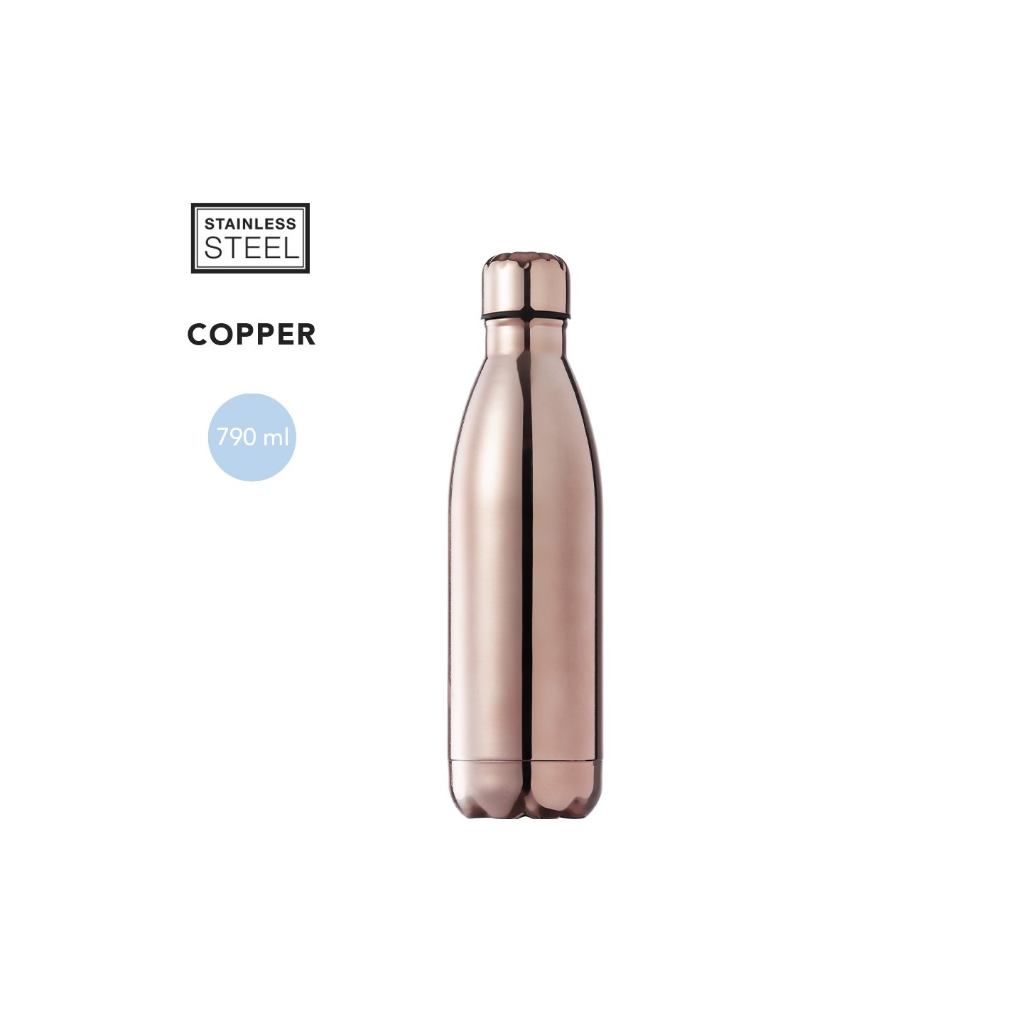 Descubre el Bidón Adbel, un elegante accesorio de 790 ml de capacidad perfecto para mantener tus bebidas favoritas siempre a mano. Fabricado en acero inoxidable y con un llamativo recubrimiento de cobre galvanizado en su exterior, este bidón destaca por su durabilidad y estilo.