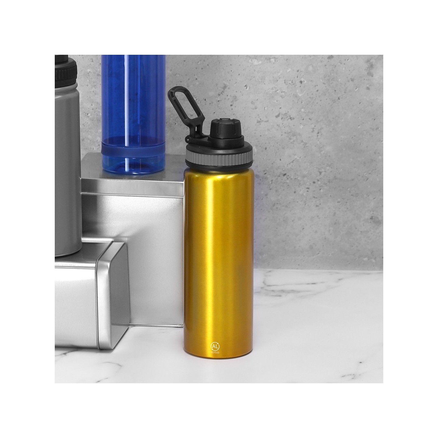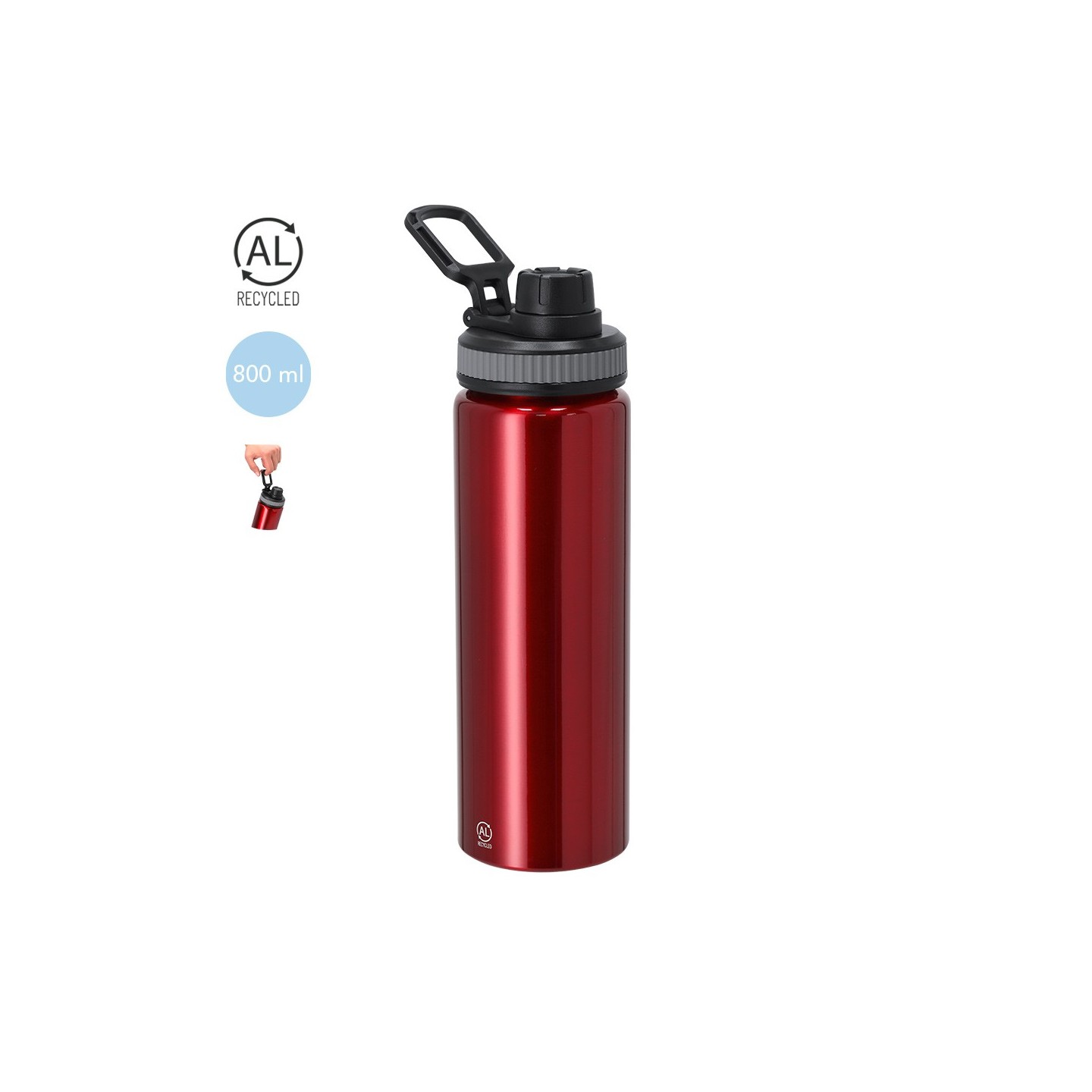 El Bidón Fouler de 800 ml, fabricado en Aluminio Reciclado, cuenta con tapadera a rosca, agarre de silicona y asa ajustable. Personalizable y perfecto para llevar a cualquier lugar.