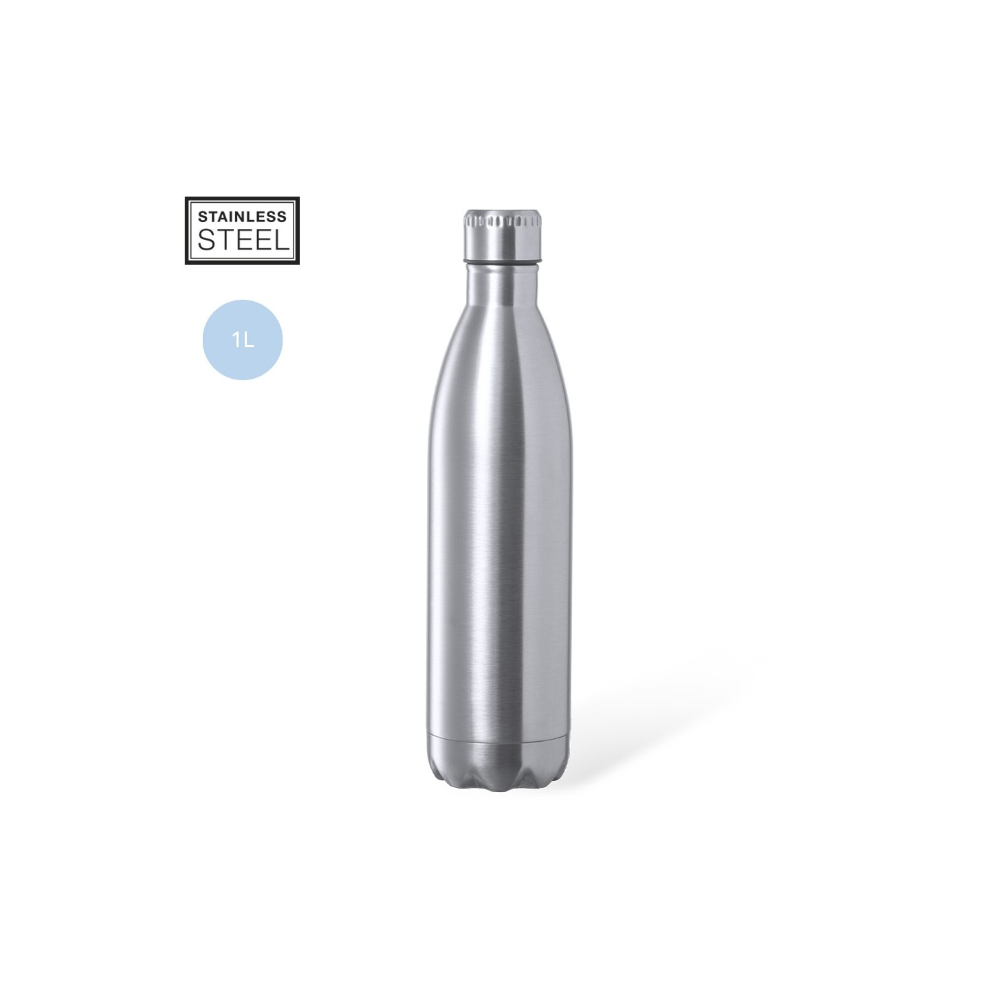 El bidón Heytun es un bidón de 1 litro de acero inoxidable brillante, libre de BPA. Tapón a rosca a juego y presentado en caja de diseño kraft. Ideal para regalos empresariales y merchandising.