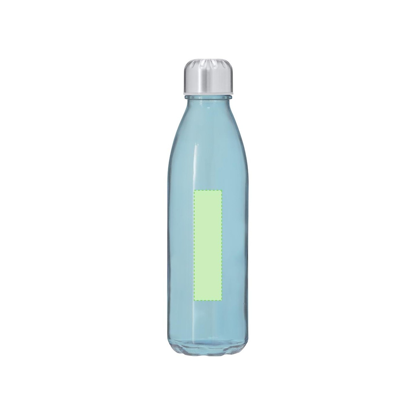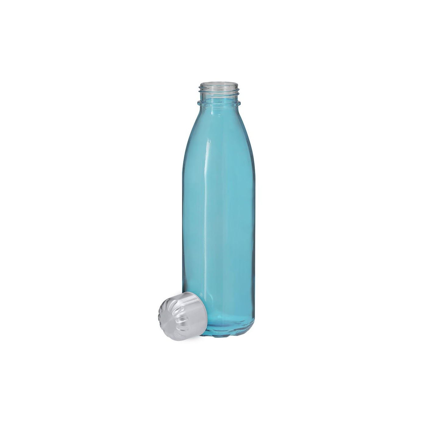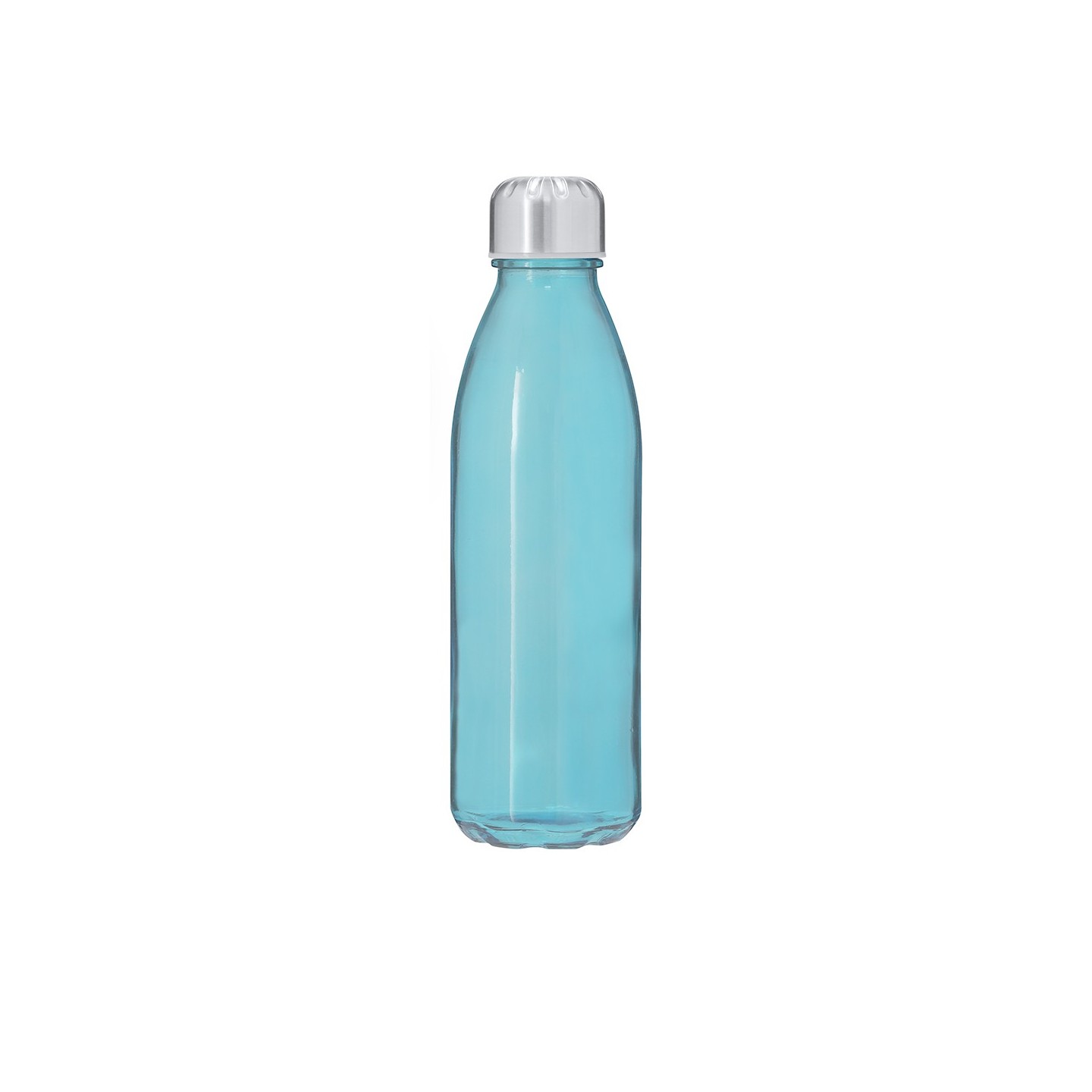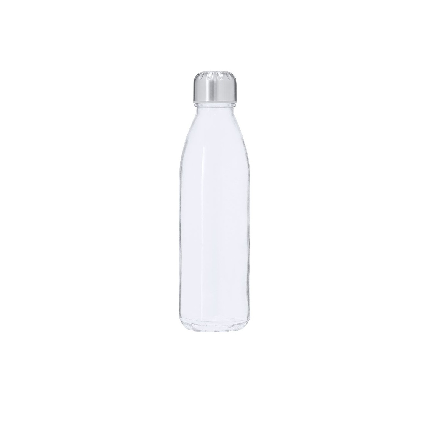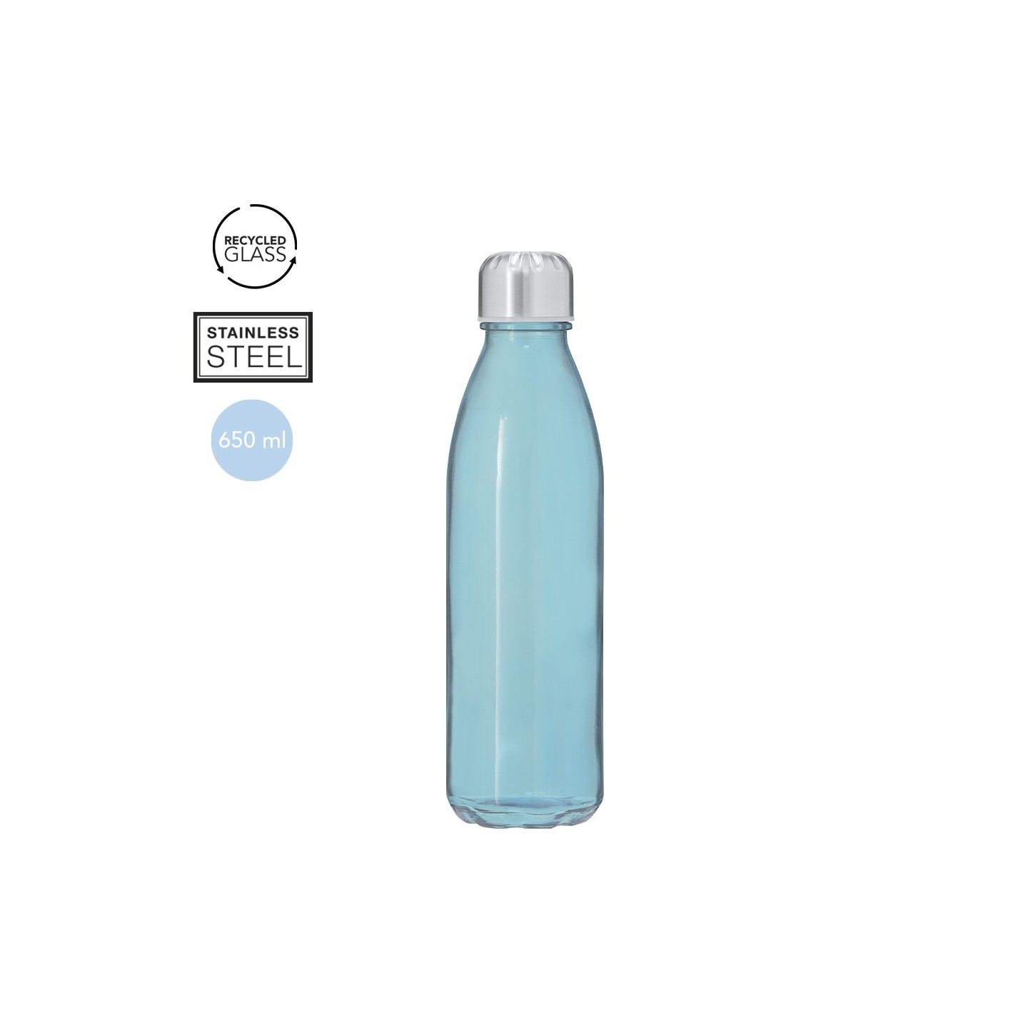Bidón de cristal reciclado de 650 ml con tapón de acero inoxidable libre de BPA. Incluye distintivo "Recycled Glass". Personalizable con tu logotipo.