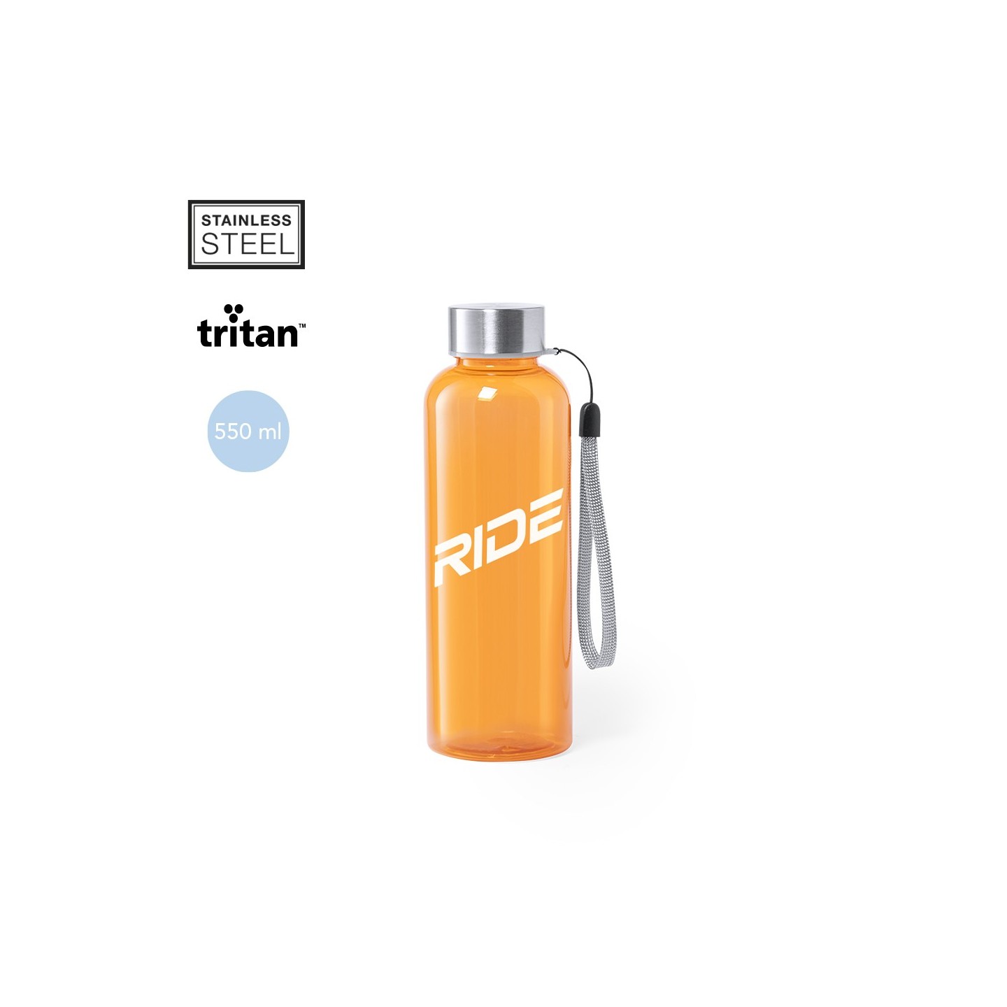 El bidón Rizbo tiene una capacidad de 500ml de tritán transparente, libre de BPA. Tapón a rosca en acero inoxidable. Ideal para hidratarte con estilo.