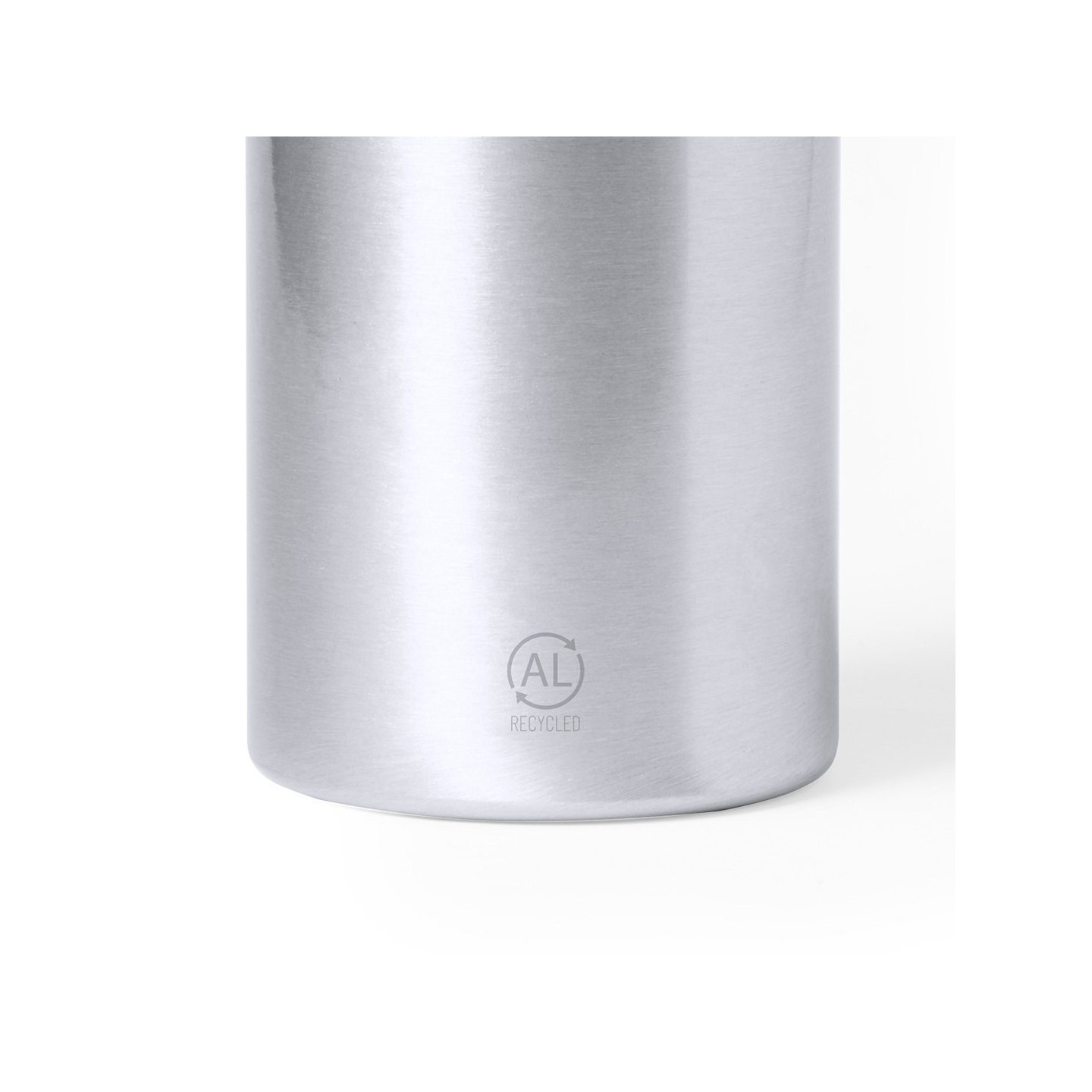 Descubre el Bidón Seirex de 400 ml, fabricado en aluminio reciclado con tapón a rosca. Libre de BPA y presentado en caja de diseño kraft.