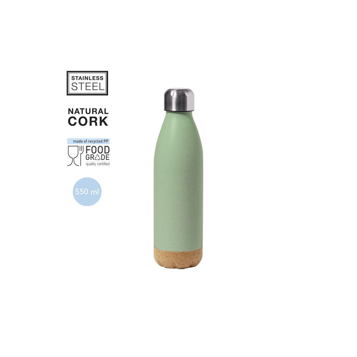 El Bidón Stroud cuenta con una capacidad de 650 ml, ofreciendo espacio suficiente para mantener a tus clientes hidratados mientras lucen tu logotipo con estilo. Su diseño combina PE veteado con una base de corcho natural, que no solo le otorga un aspecto distintivo, sino también un toque de ecología y modernidad.