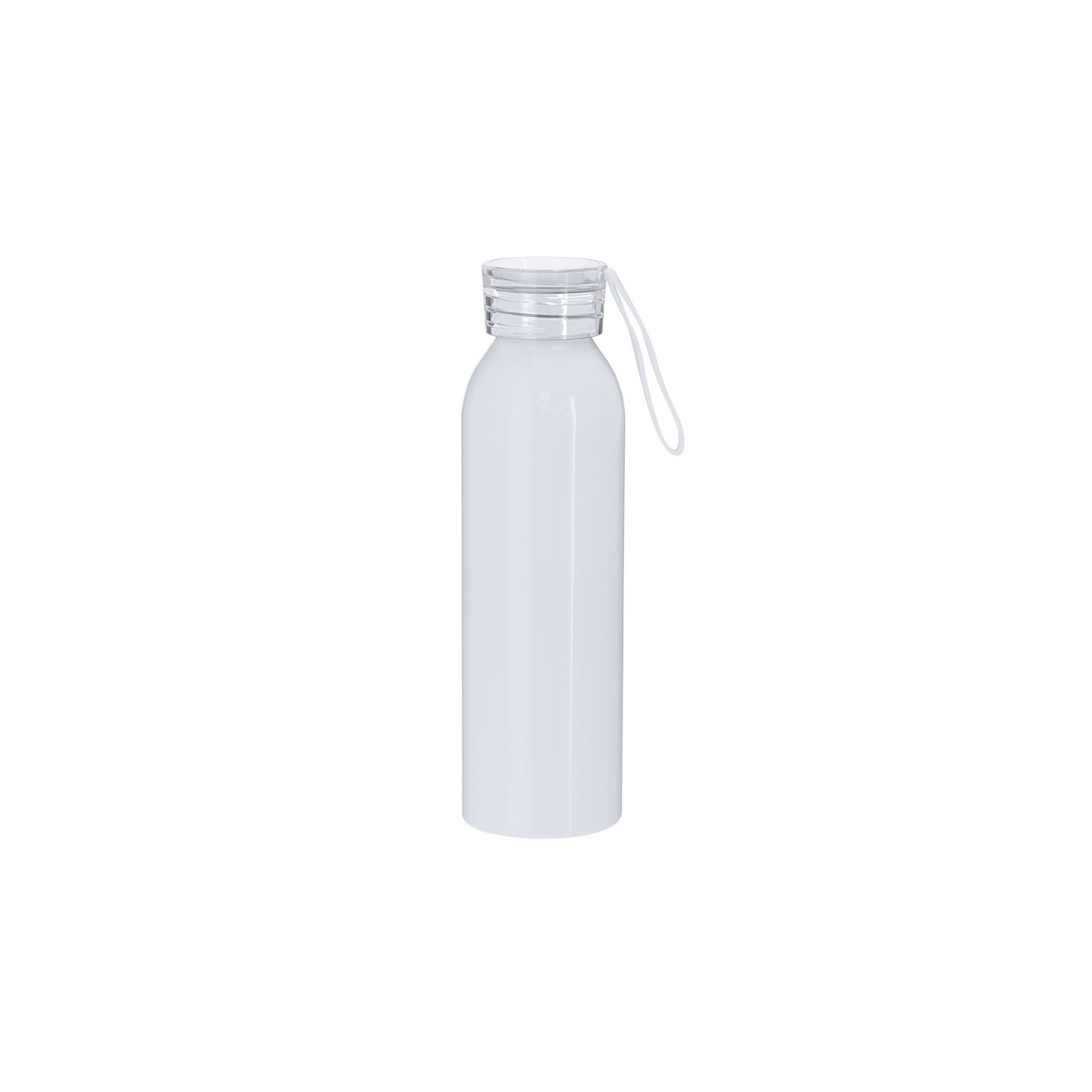 Bidón personalizable de 650 ml en aluminio resistente, con tapón a rosca y correa. Perfecto para sublimación, libre de BPA. Ideal para empresas.