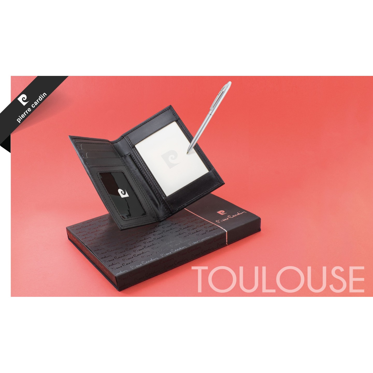 El Bloc Bolígrafo Portatarjetas TOULOUSE Pierre Cardin es un accesorio exclusivo diseñado para quienes buscan un equilibrio entre elegancia y funcionalidad. Fabricado en piel natural, este portatarjetas destaca por su acabado premium y el logotipo termo grabado de la prestigiosa marca Pierre Cardin, lo que le otorga un toque de distinción.