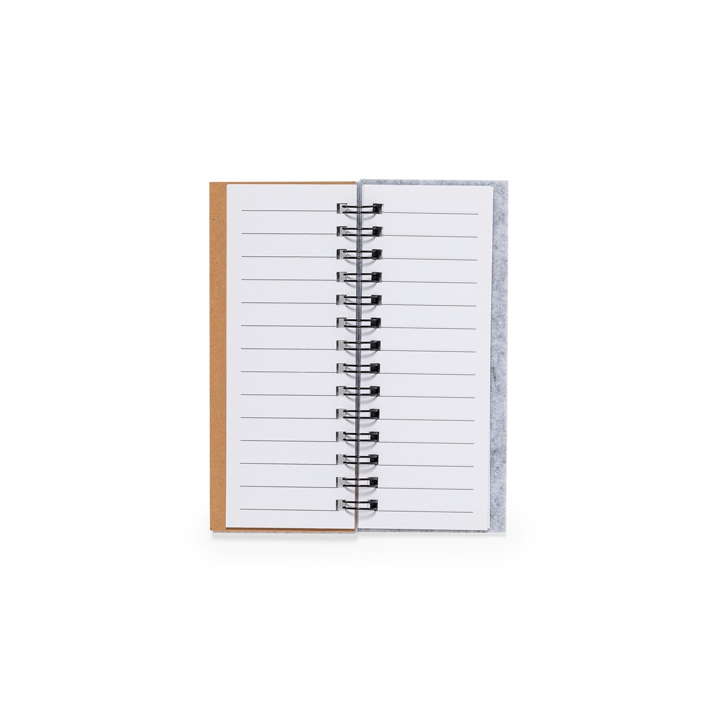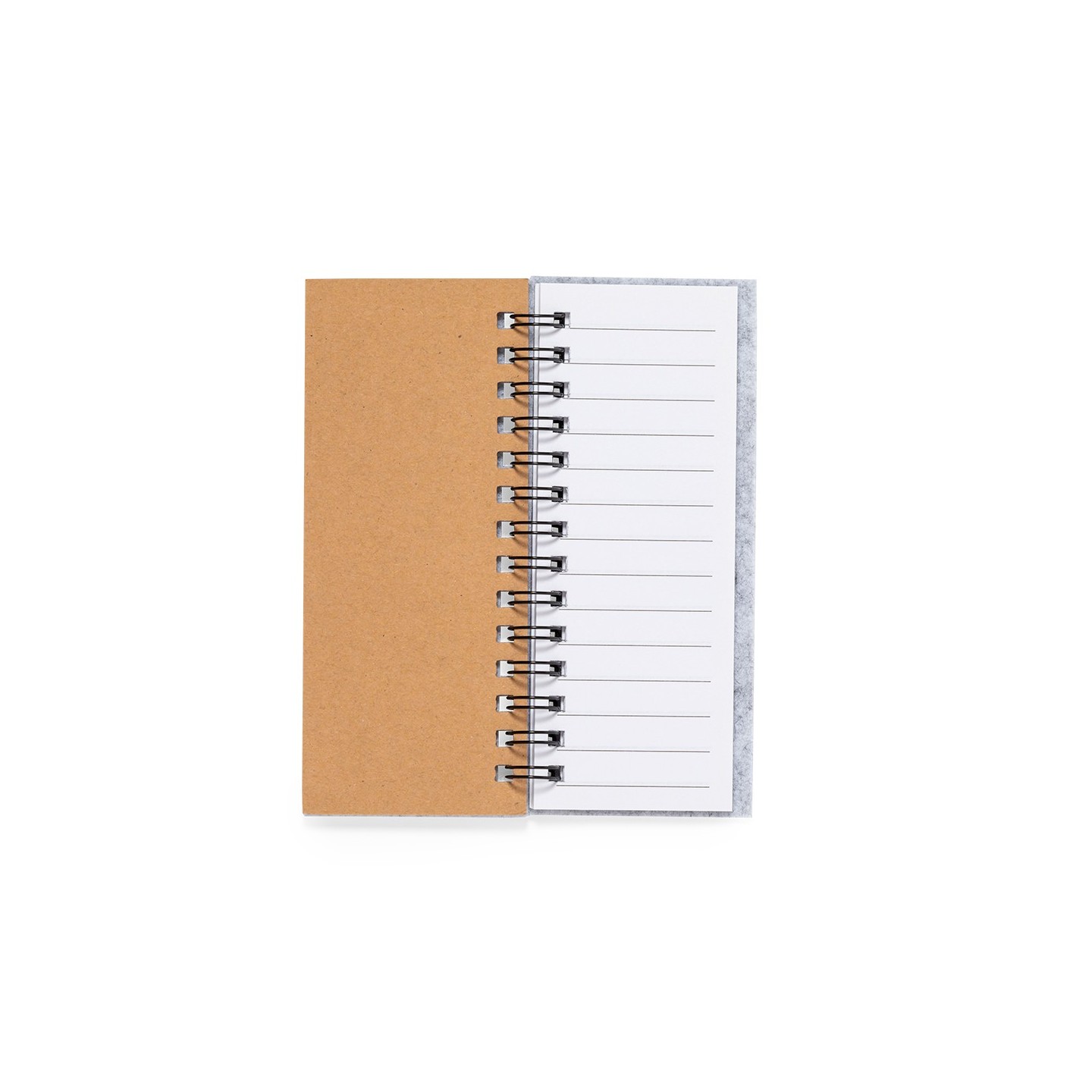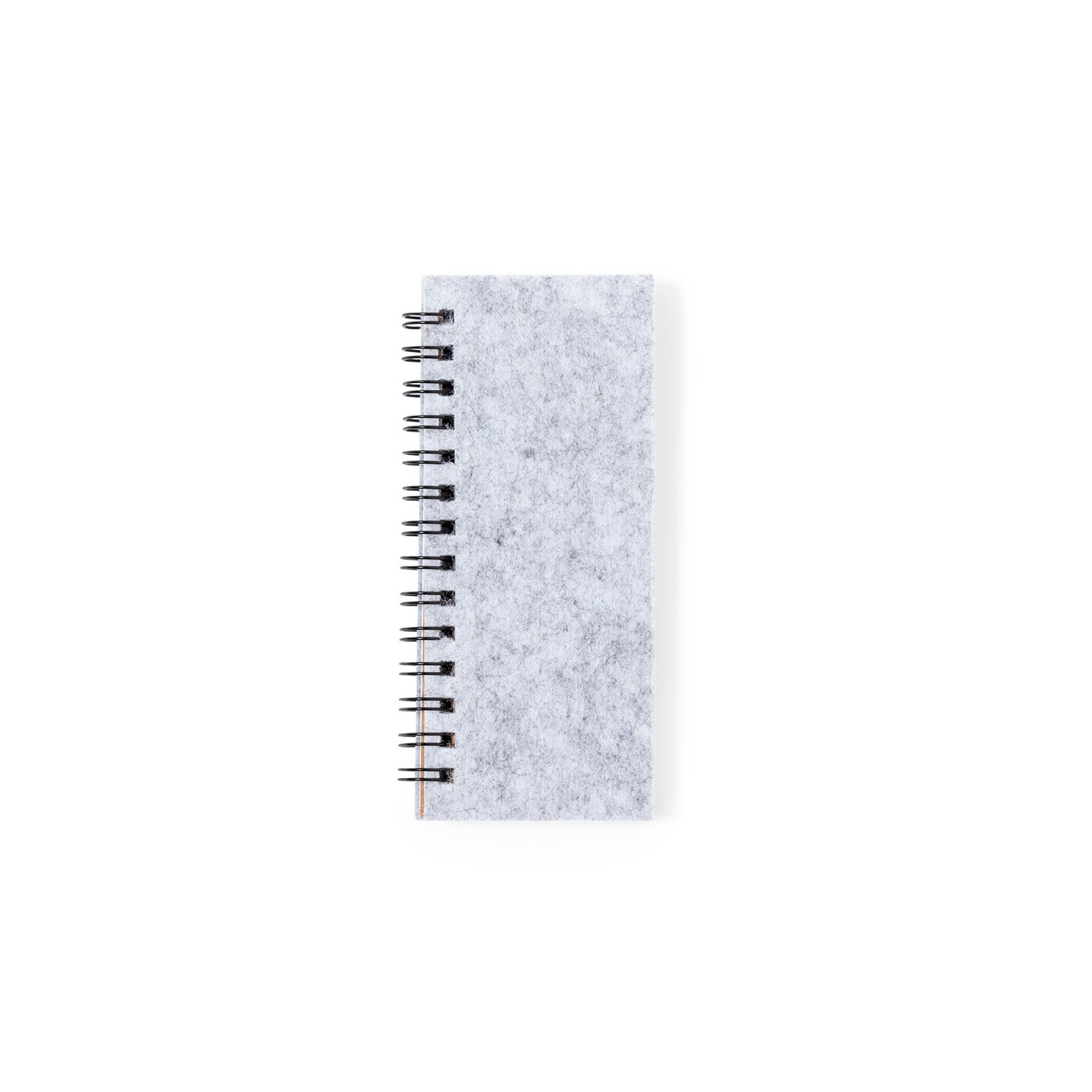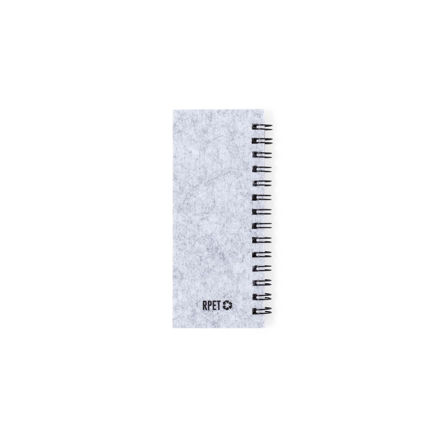 El Bloc de Notas Aurat es de fieltro RPET, 30 hojas, 25 notas adhesivas medianas y 125 mininotas. Versátil, práctico y sostenible para tus notas diarias