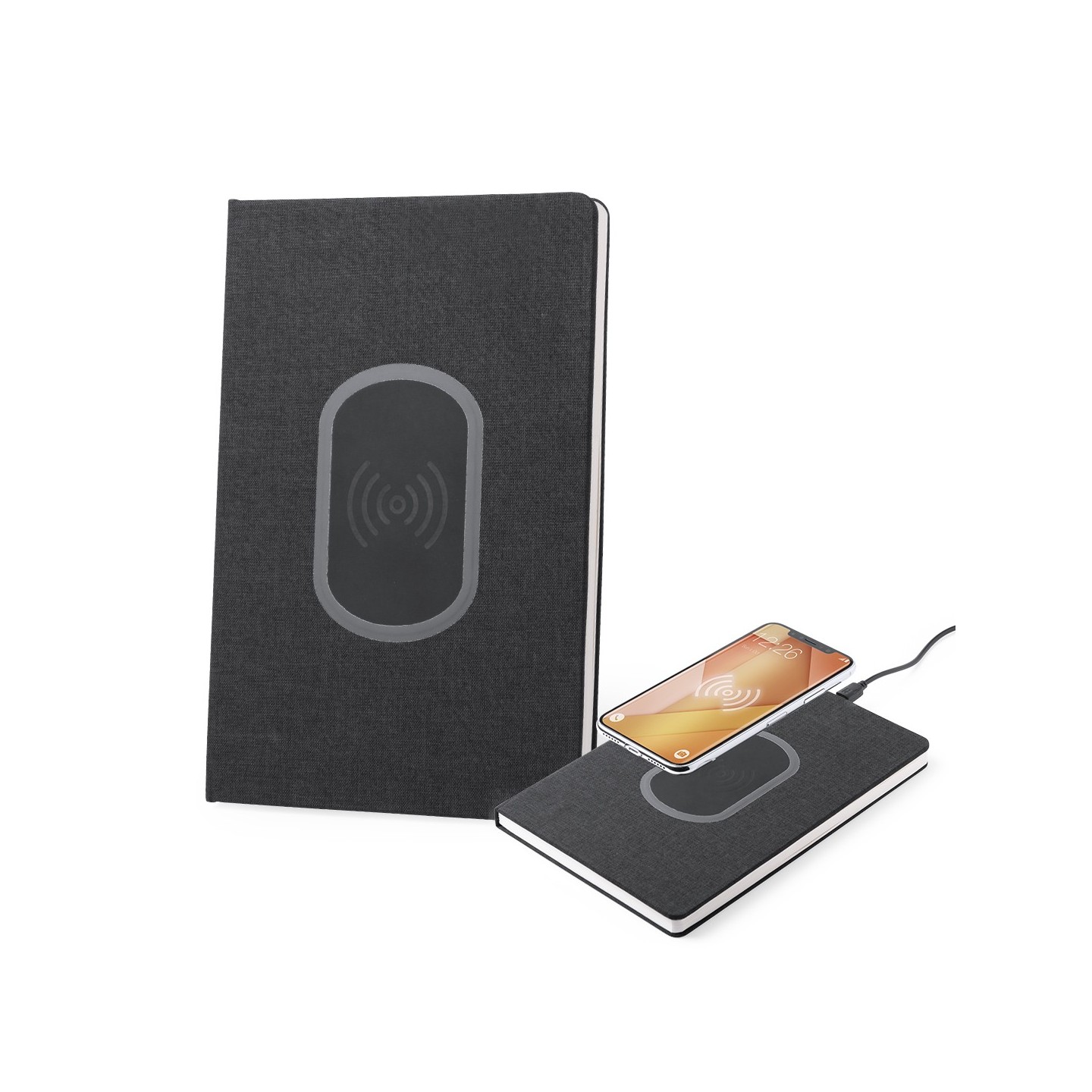Una de las características destacadas de este bloc de notas es la original estación de carga integrada en la portada. Con este innovador diseño, puedes cargar de manera inalámbrica tu teléfono mientras tienes acceso a tus notas y apuntes importantes, sin la necesidad de cables adicionales.