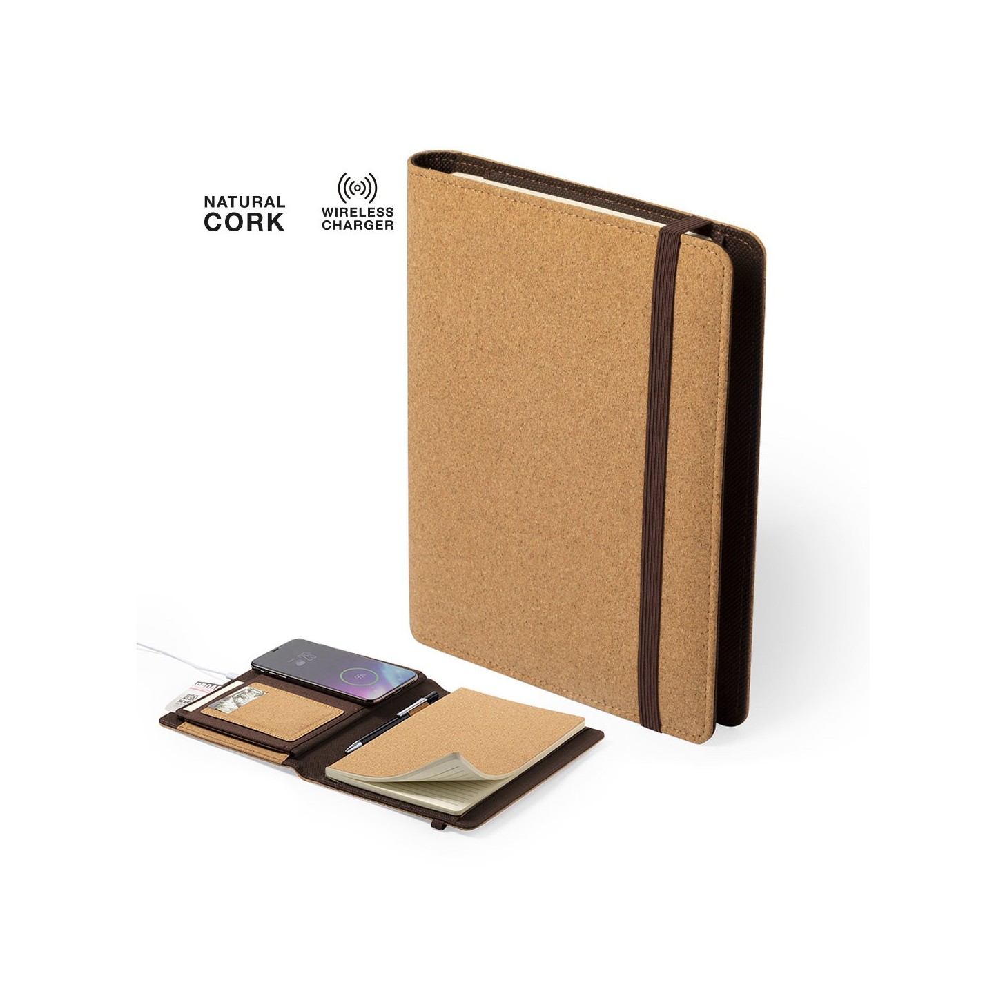 El Bloc Notas Cargador Toskan tiene las cubiertas de corcho natural, cargador inalámbrico integrado y diseño eco. El regalo perfecto para transmitir sostenibilidad.