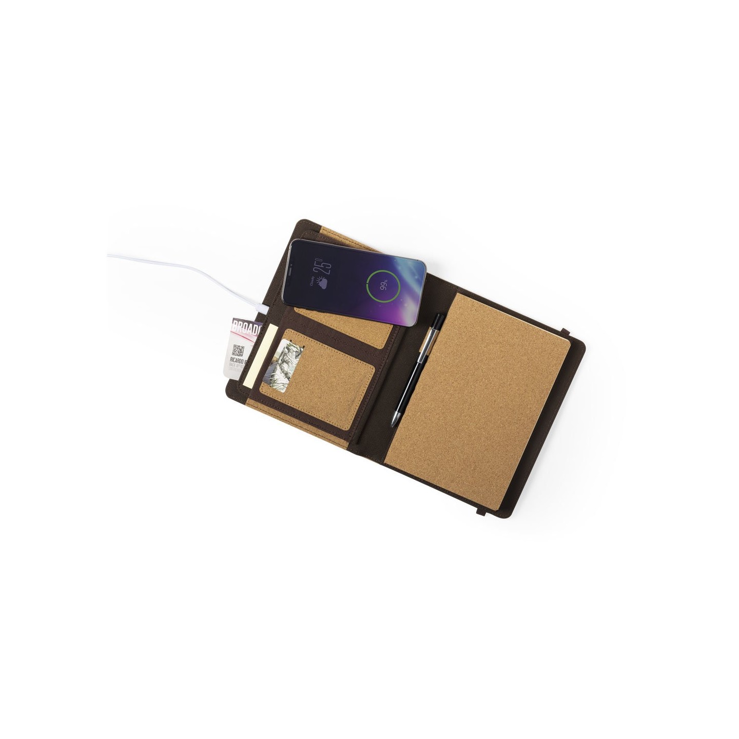 El Bloc Notas Cargador Toskan es ideal para los amantes de la naturaleza y la tecnología. Su diseño eco y el cargador inalámbrico lo hacen práctico y sostenible.