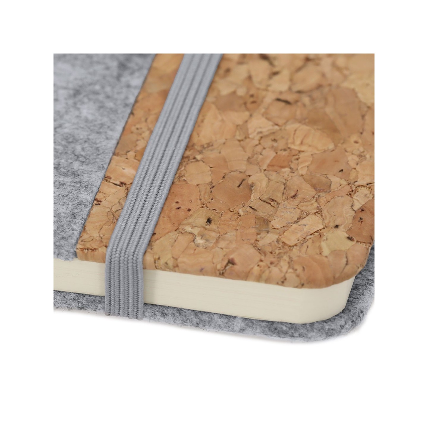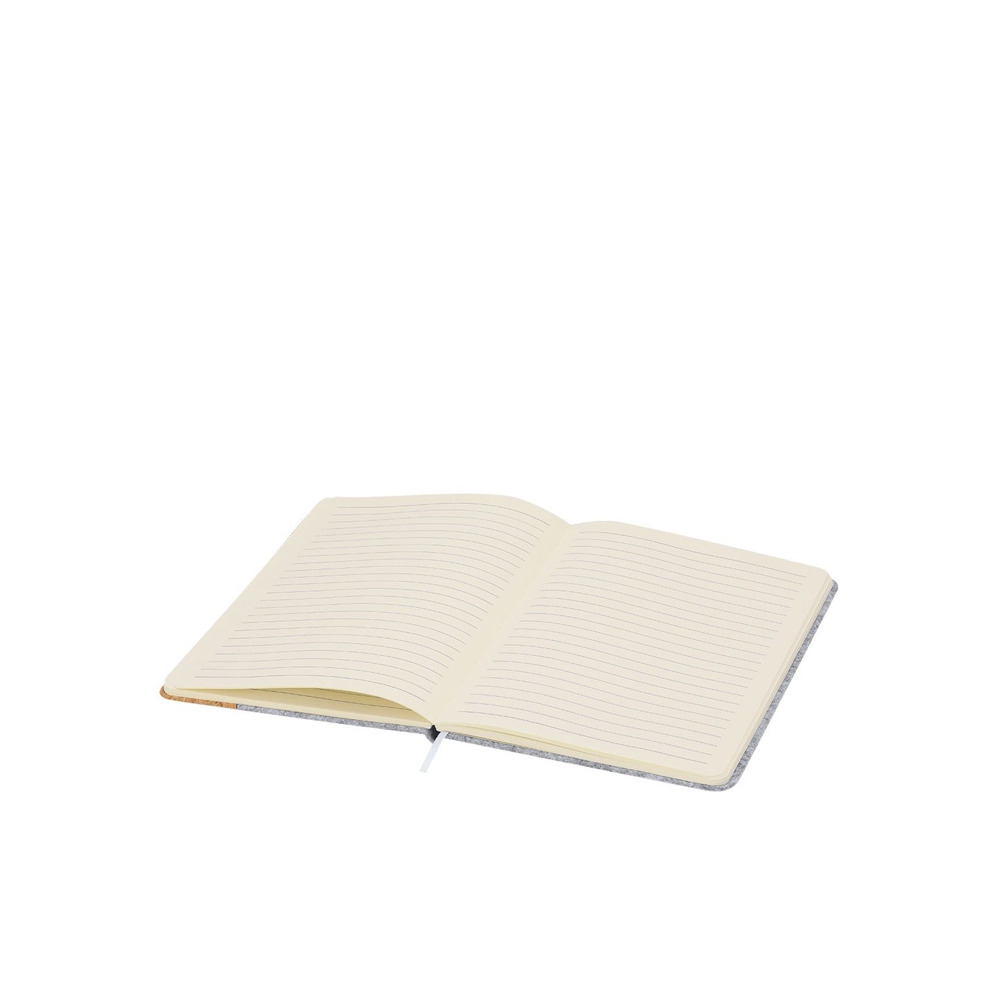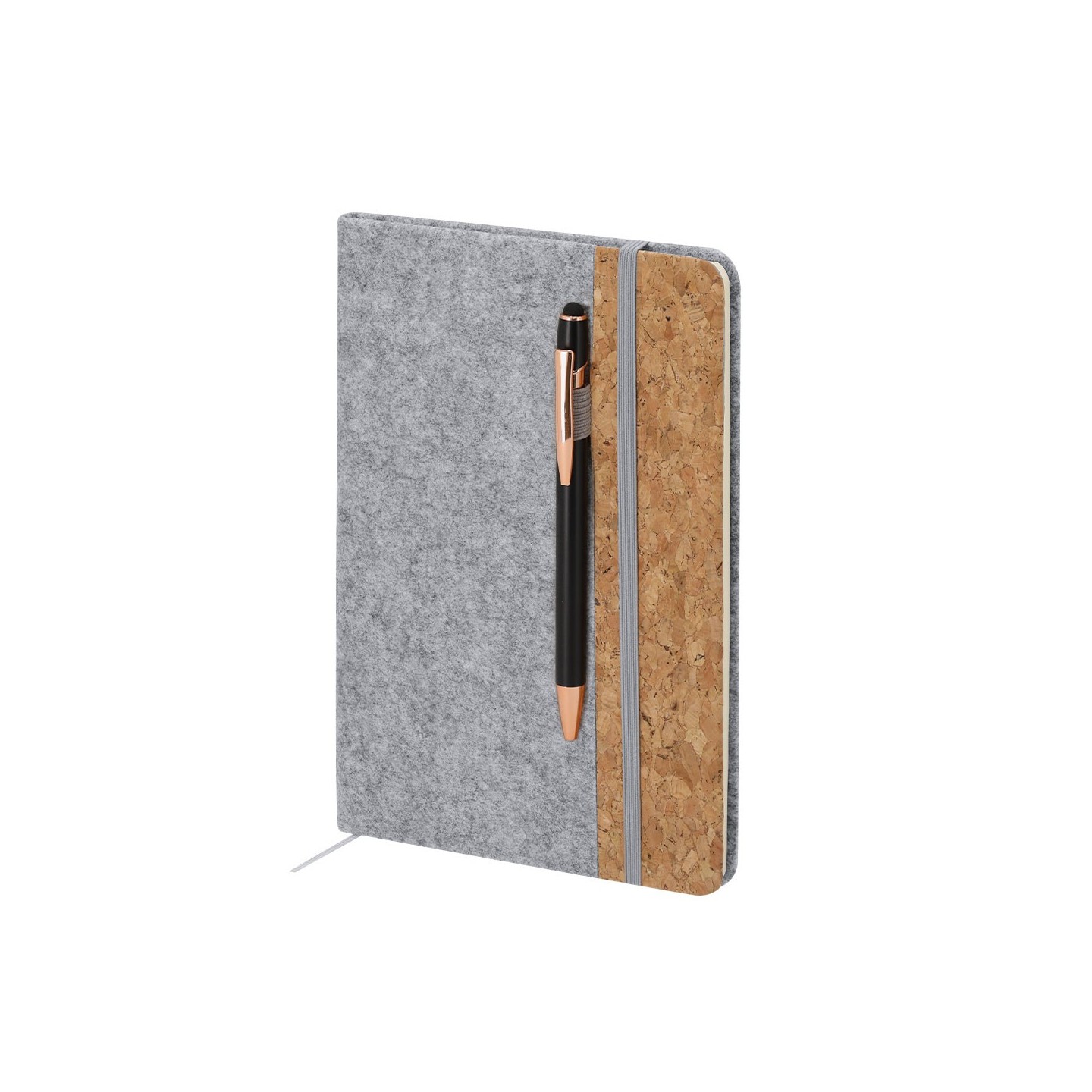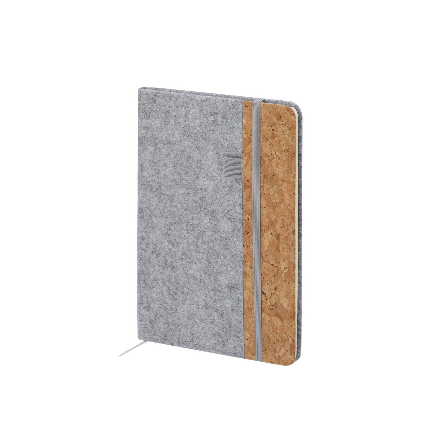 Bloc Notas DRISCOL, ecológico con tapas de fieltro RPET y corcho. Incluye 80 hojas, elástico y marcapáginas. Personalizable con tu logotipo.