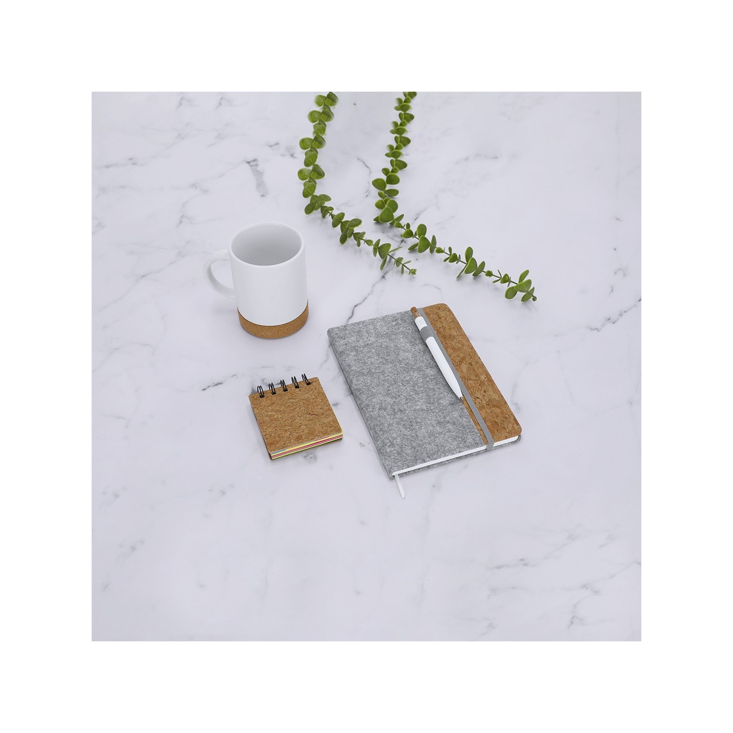 El Bloc Notas DRISCOL es la combinación perfecta entre funcionalidad y sostenibilidad, diseñado para quienes buscan un producto de alta calidad con un compromiso claro con el medio ambiente. Sus tapas rígidas están elaboradas con una combinación innovadora de fieltro RPET y corcho, dos materiales ecológicos que fomentan el uso responsable de los recursos naturales. El fieltro RPET es un material obtenido a través del reciclaje de plásticos, lo que le otorga un doble beneficio: es reciclable y proviene de recursos reciclados, contribuyendo significativamente a la reducción de residuos y la preservación del planeta.