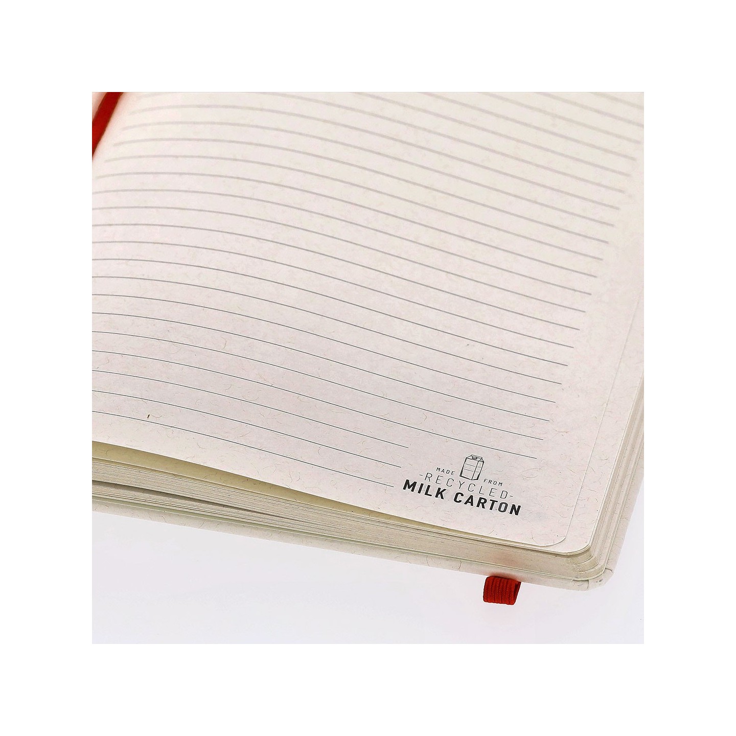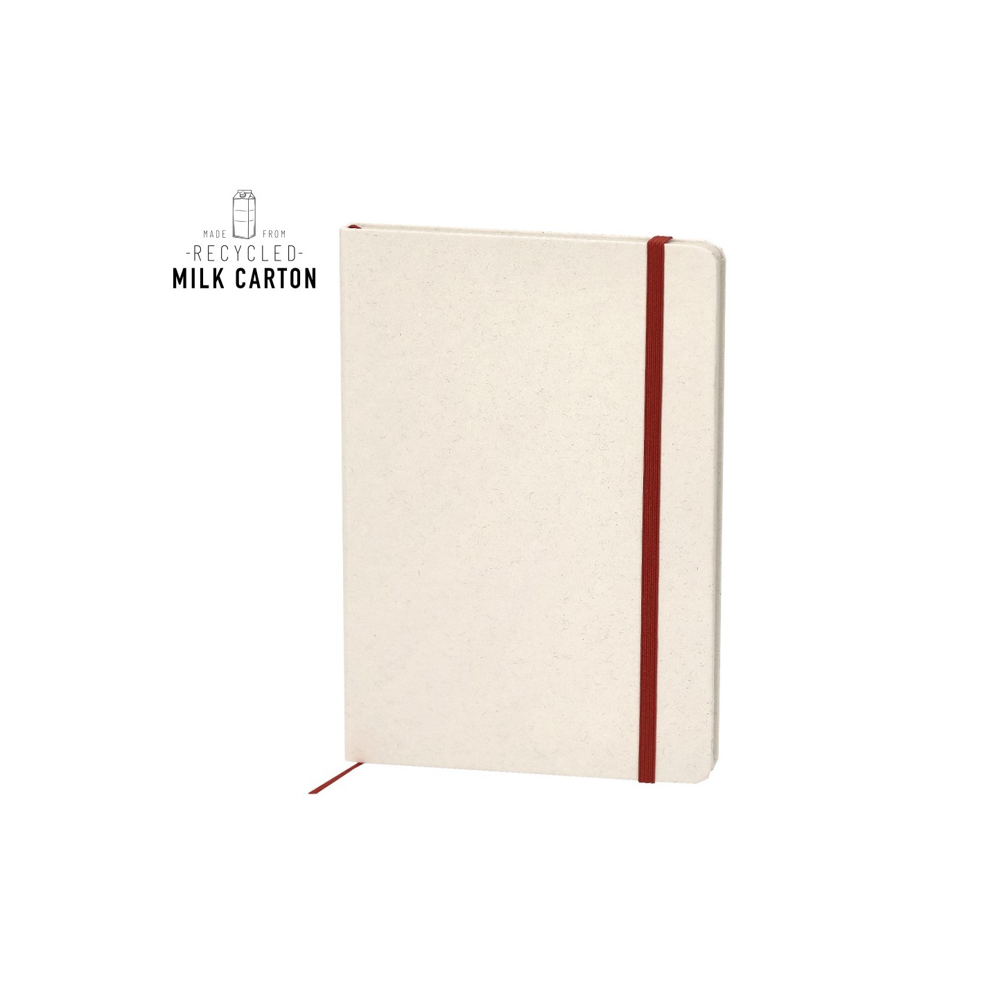 La banda elástica de sujeción y el marcapáginas a juego aportan comodidad y practicidad, asegurando que tus apuntes estén siempre en orden. Además, el bloc cuenta con el distintivo Recycled Milk Carton en la contraportada y en las hojas interiores, reflejando el compromiso con el medio ambiente. Su diseño funcional y ecológico lo convierte en una excelente opción para cualquier empresa que desee regalar un producto útil y sostenible, totalmente personalizable con tu logotipo.
