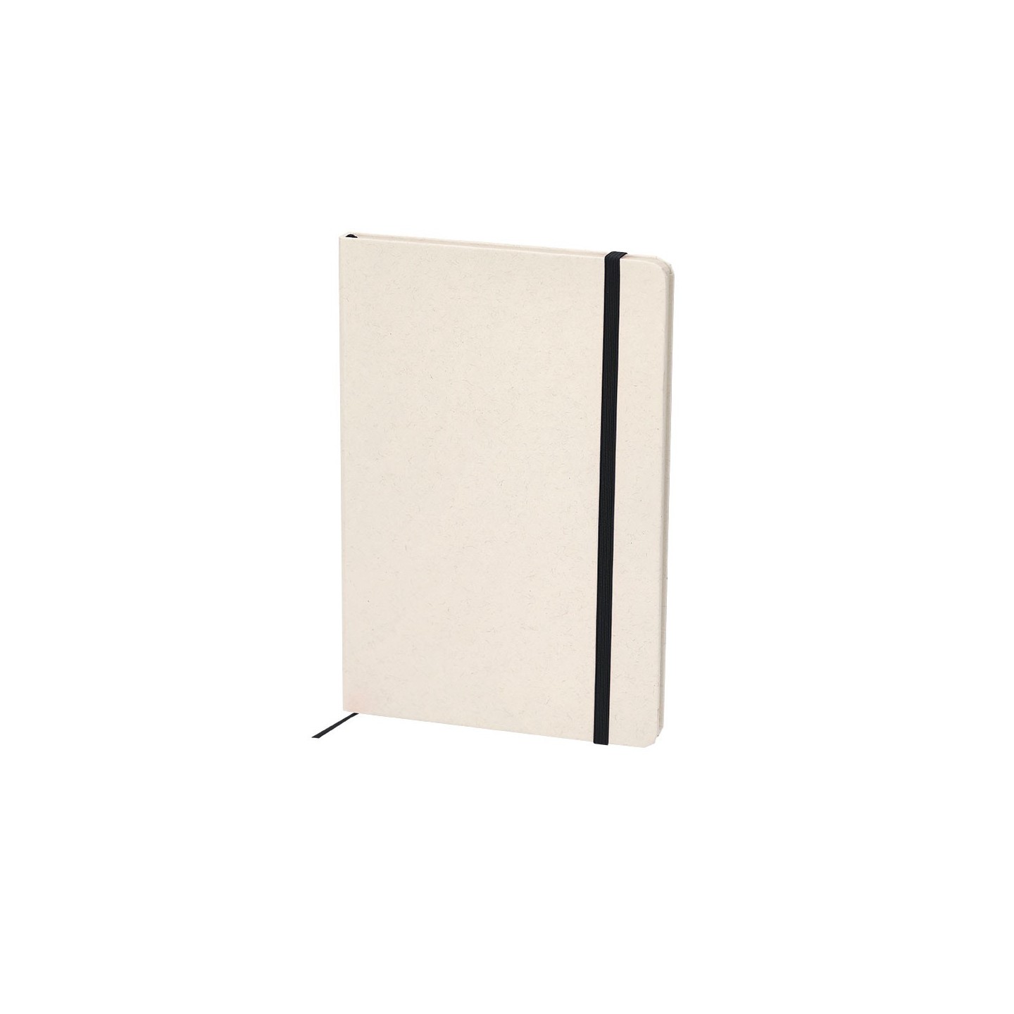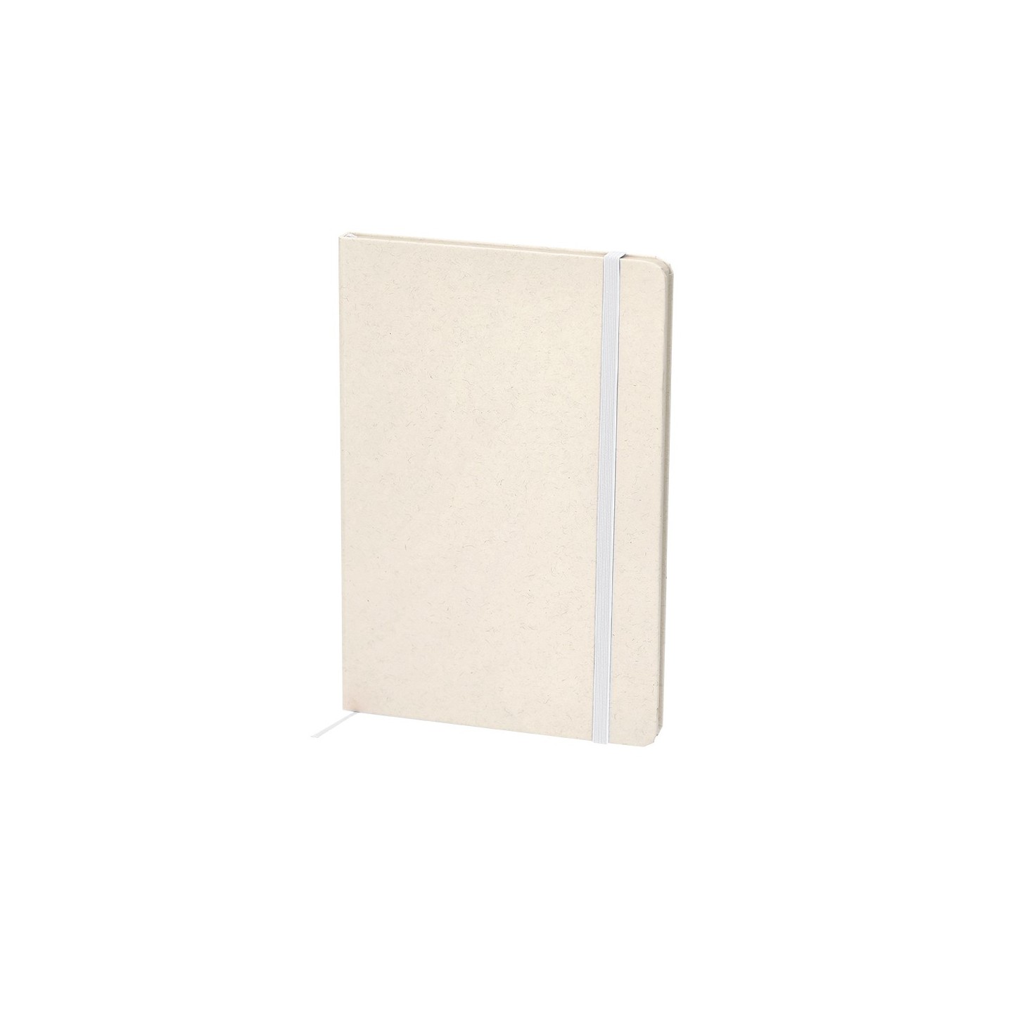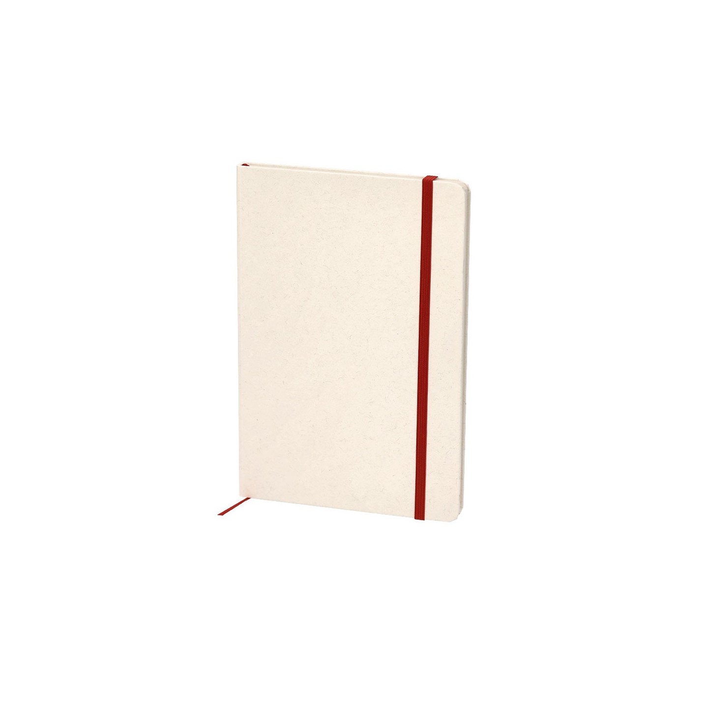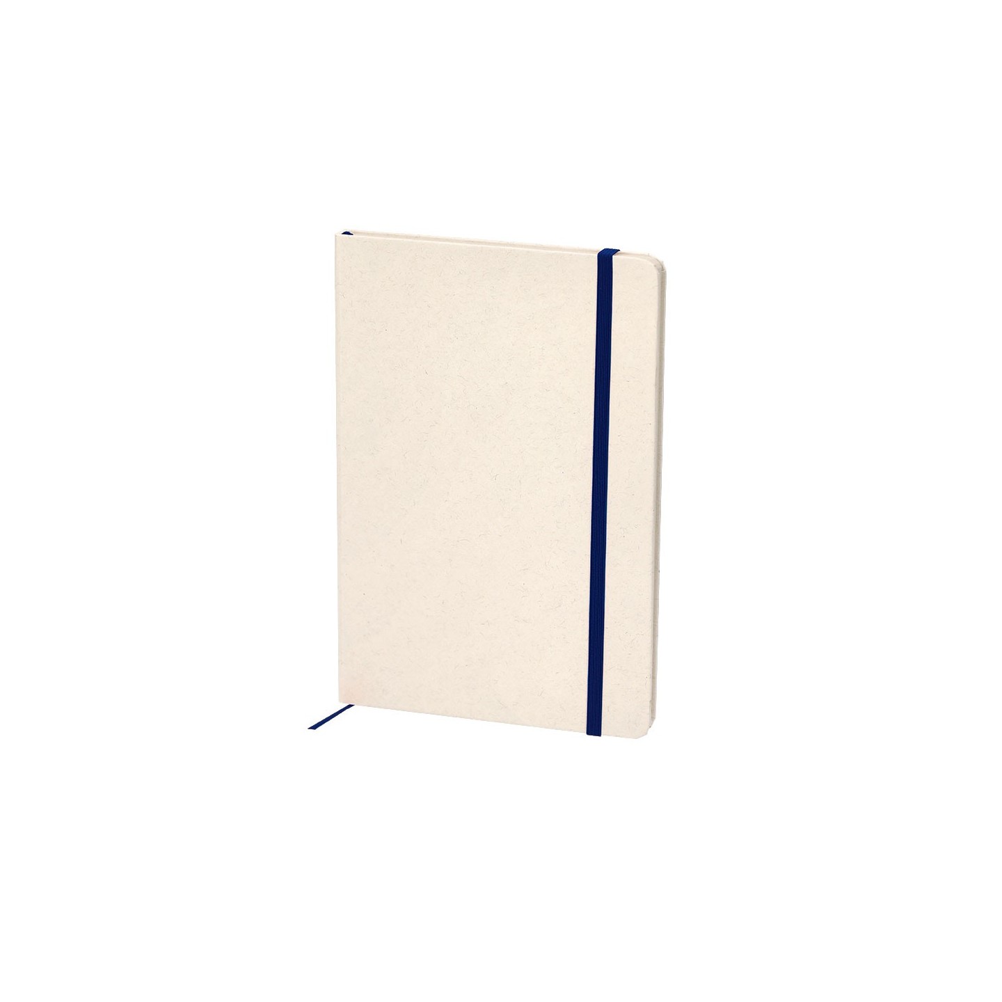 Bloc Notas KEJAR de cartón reciclado con 80 hojas rayadas, banda elástica y marcapáginas. Personalizable con logotipo, ideal para regalos ecológicos.