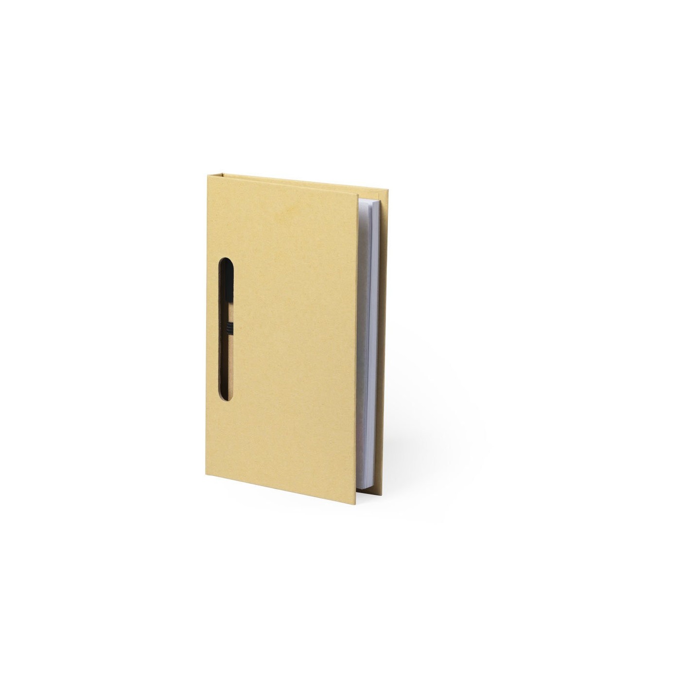 El bloc de notas cuenta con tapas rígidas fabricadas en cartón reciclado, demostrando nuestro compromiso con la sostenibilidad. Además, cuenta con un práctico soporte para el bolígrafo, que te permite tenerlo siempre a mano cuando necesites escribir tus ideas o anotaciones importantes.