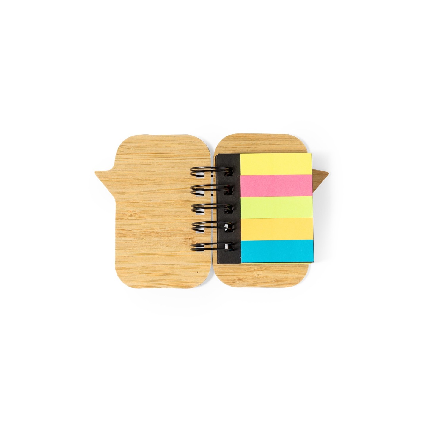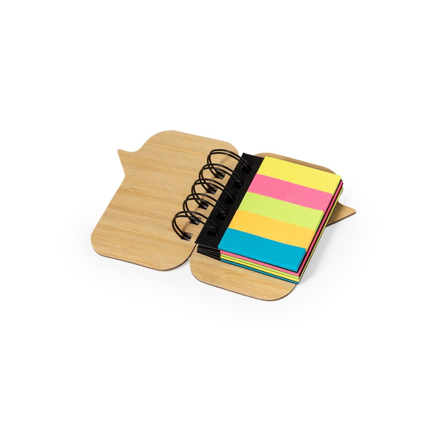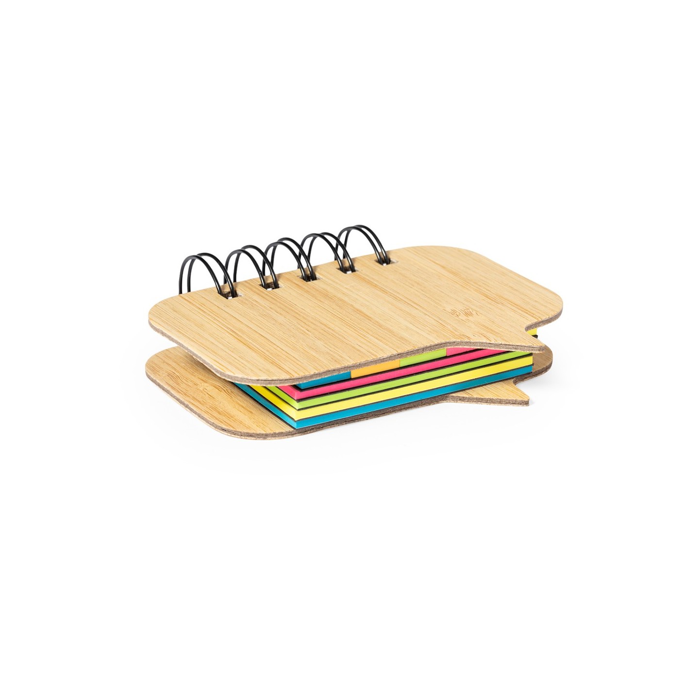 Bloc Notas Mabur con tapas de bambú en forma de globo speech, incluye notas adhesivas. Personalizable y eco-friendly