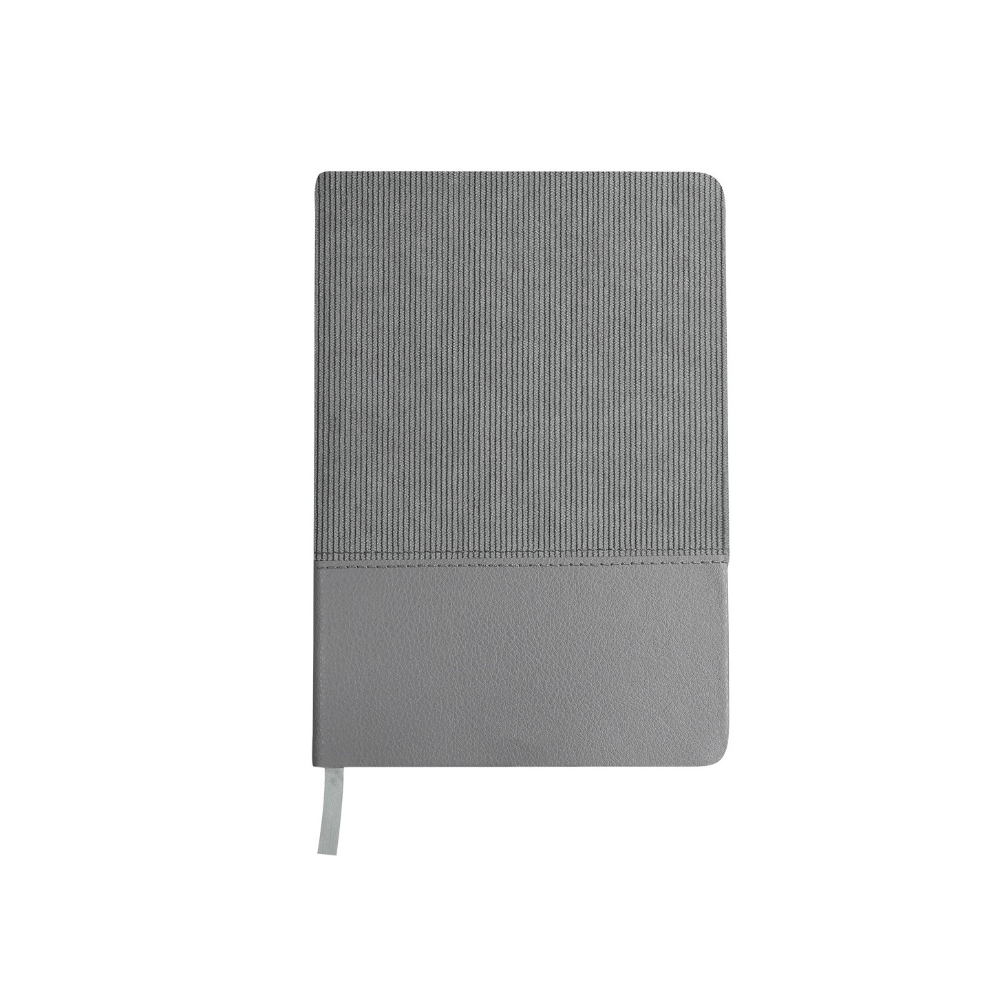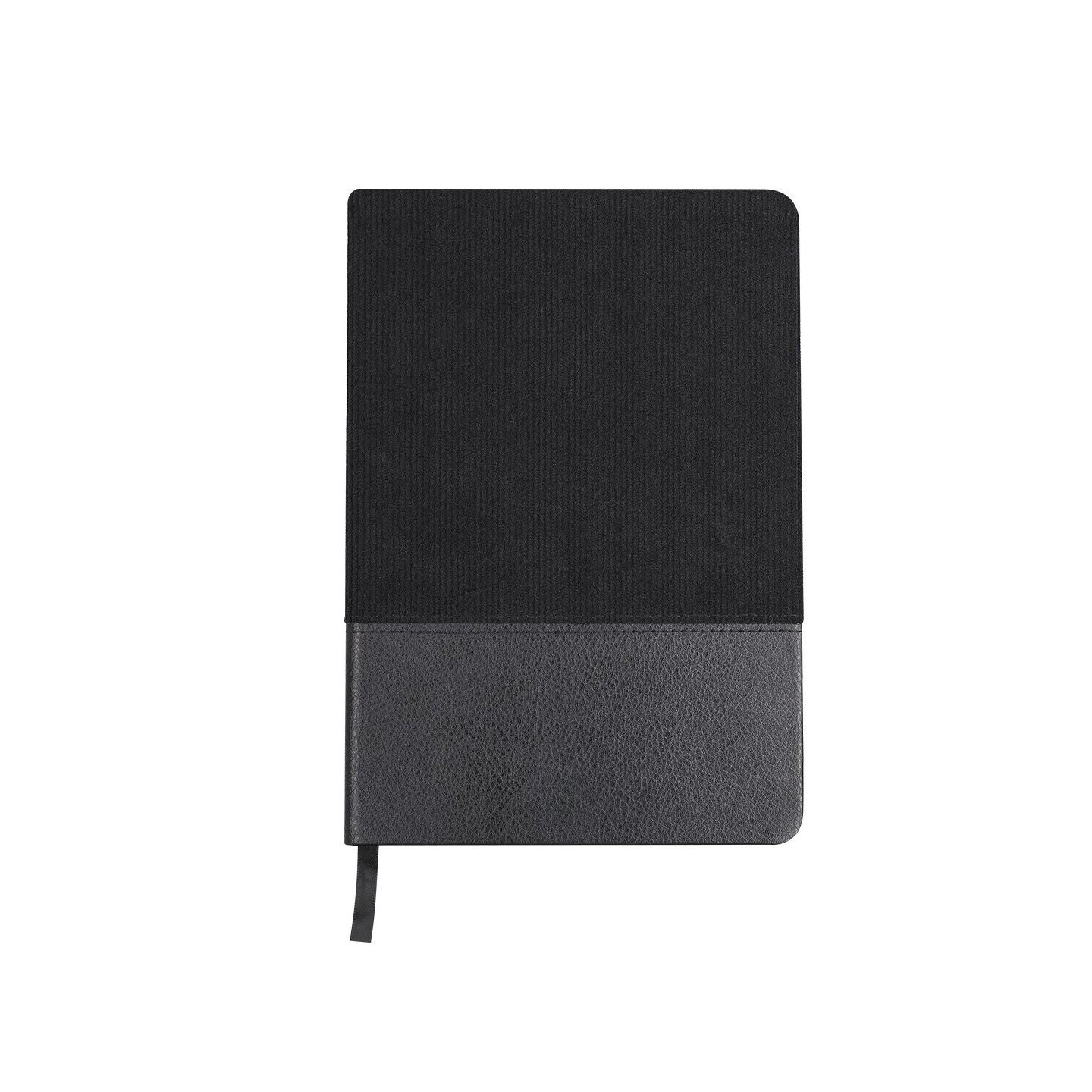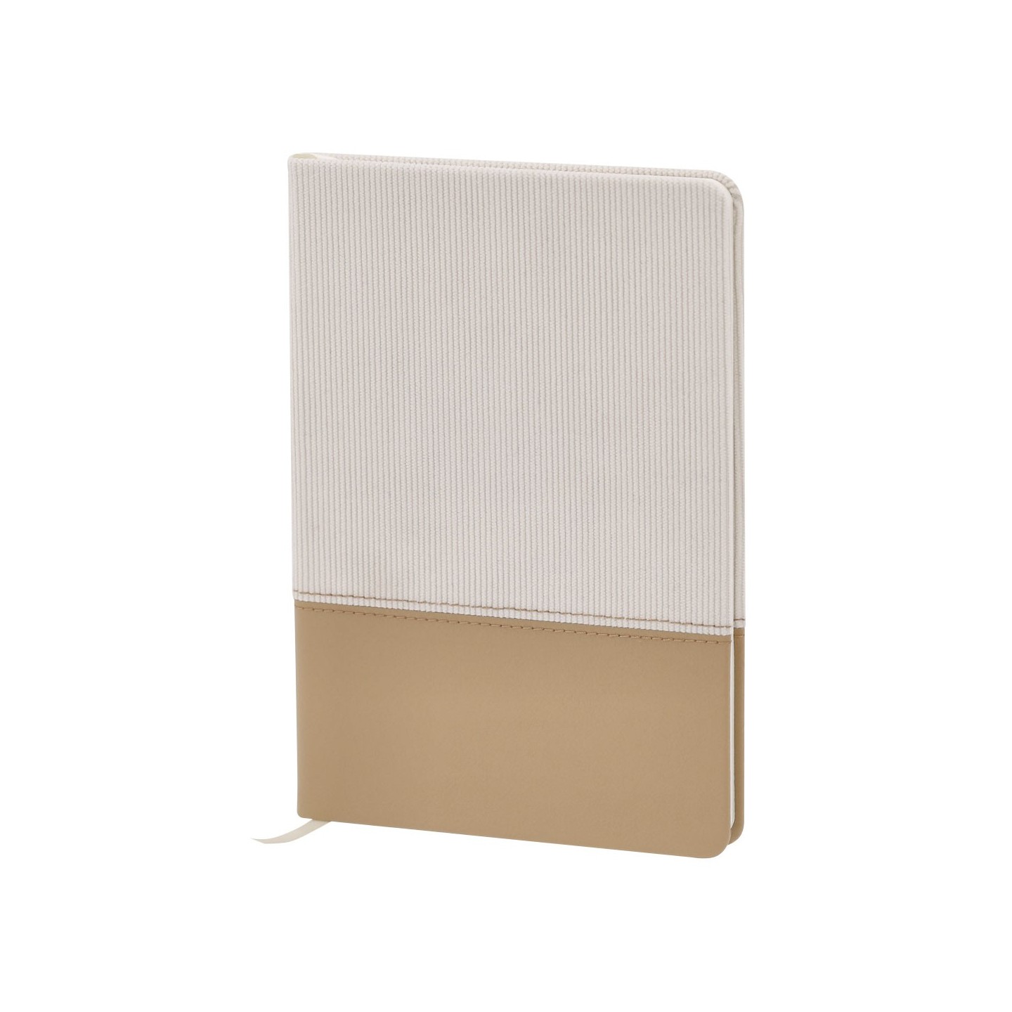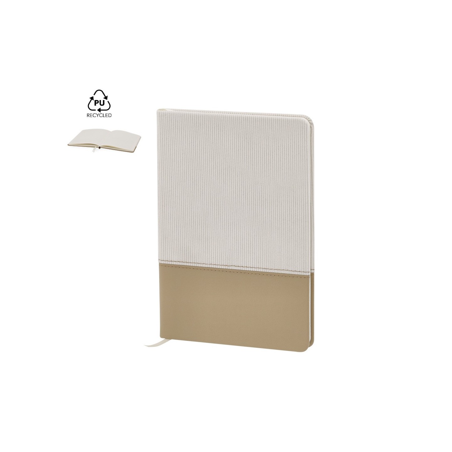 Bloc de notas A5 Mitek en suave pana y PU reciclado. 80 hojas crema, marcapáginas a juego y logotipo en contraportada. Personalizable. Ideal para empresas.