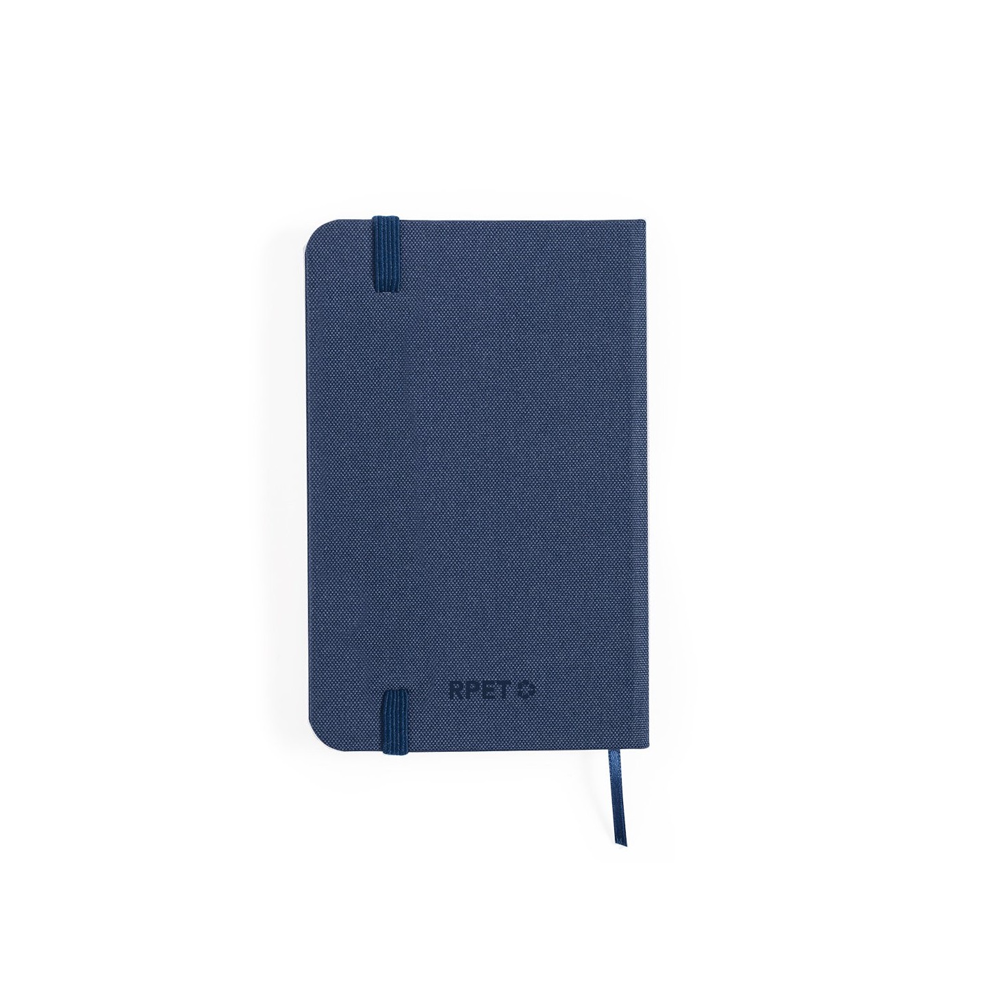 El Bloc Notas Pushkin tiene tapas en RPET 300D, 100 hojas rayadas y elástico. Personalizable y eco-friendly