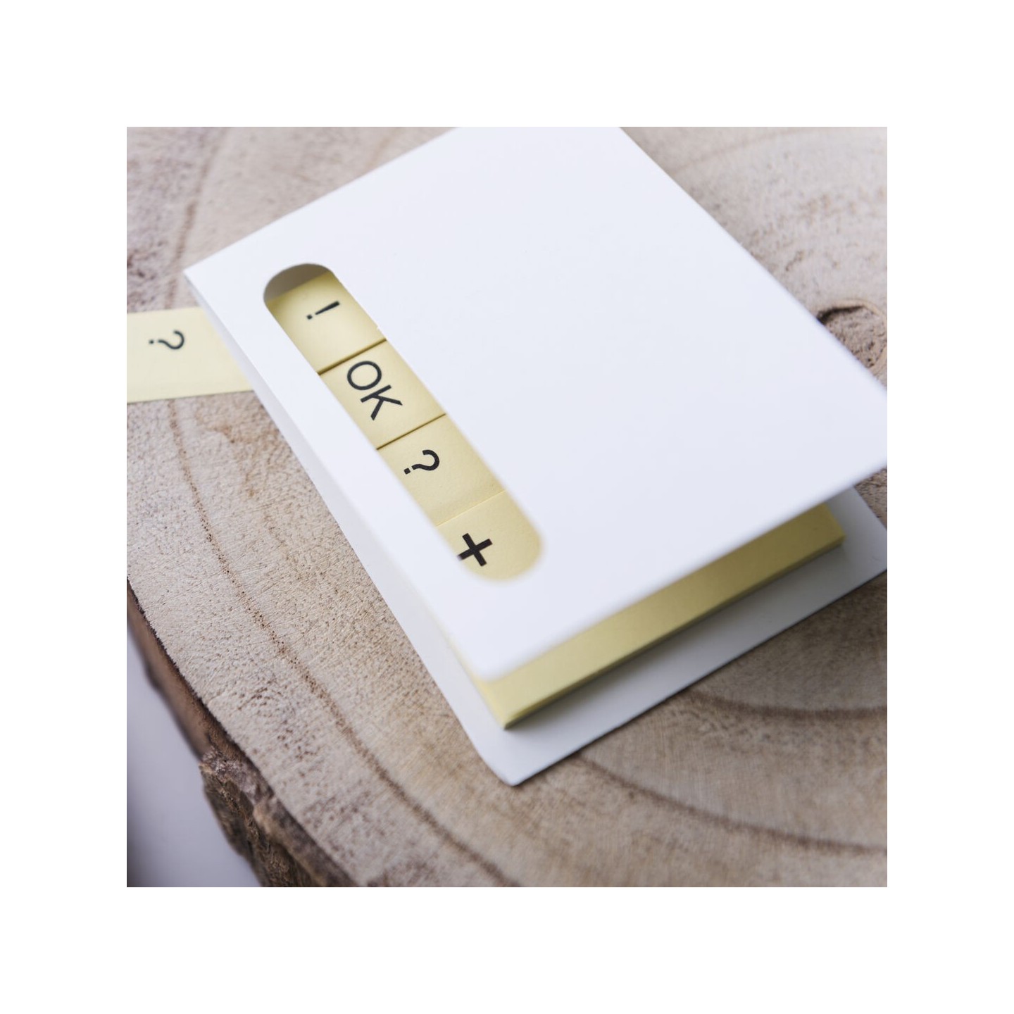 El Bloc Notas Selide es un bloc de notas adhesivas con tapa troquelada en elegante cartón blanco. Incluye 125 mini notas impresas con símbolos útiles. Ideal para organizar y resaltar ideas.