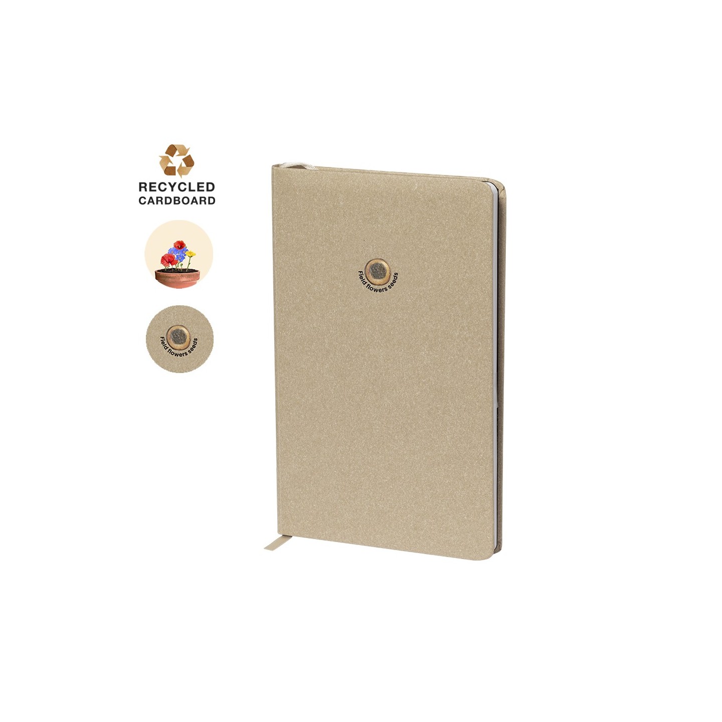 El Bloc Notas Semillas Baupres es de tapas rígidas de cartón reciclado, 80 hojas. Incluye cápsula de semillas. ¡Personalizable y eco-amigable!