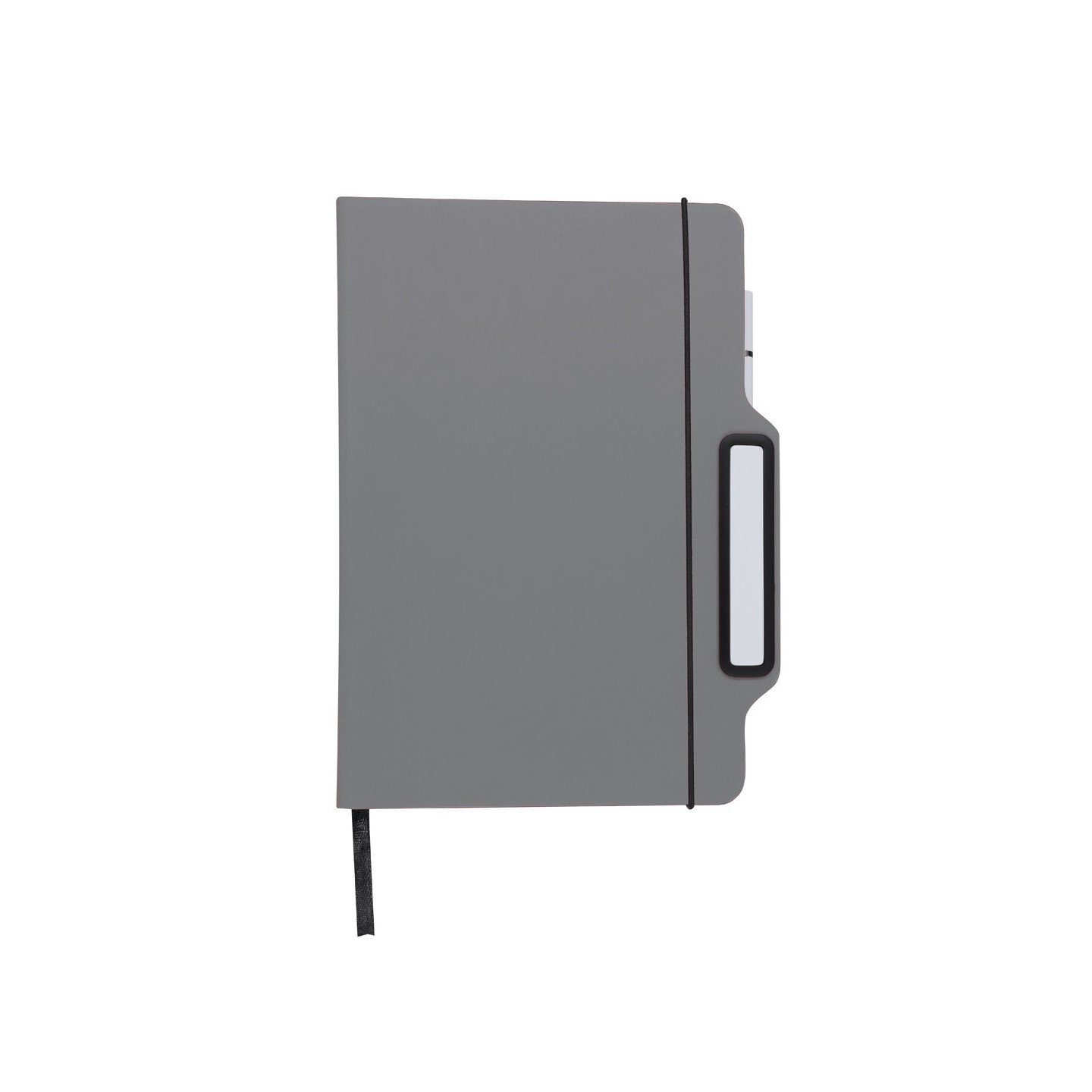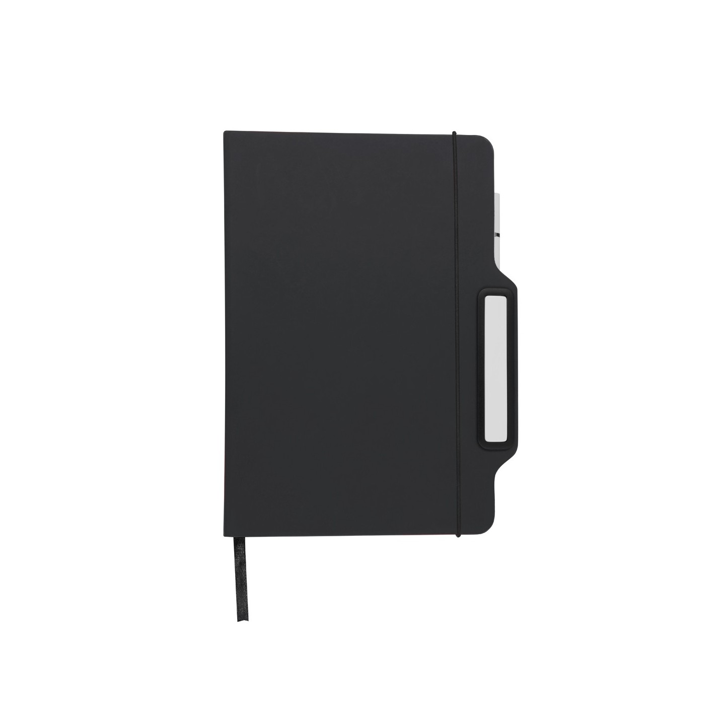 Un elástico de cierre negro asegura que tus notas permanezcan protegidas y organizadas, mientras que el marcapáginas a juego facilita la localización rápida de tus apuntes. Este bloc no solo es funcional, sino que también se puede personalizar con tu logotipo, convirtiéndolo en un regalo perfecto para clientes, empleados o eventos corporativos.