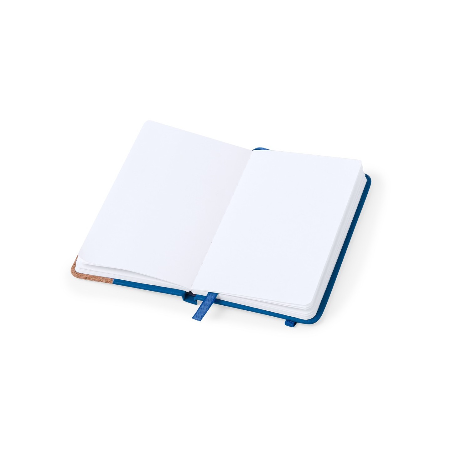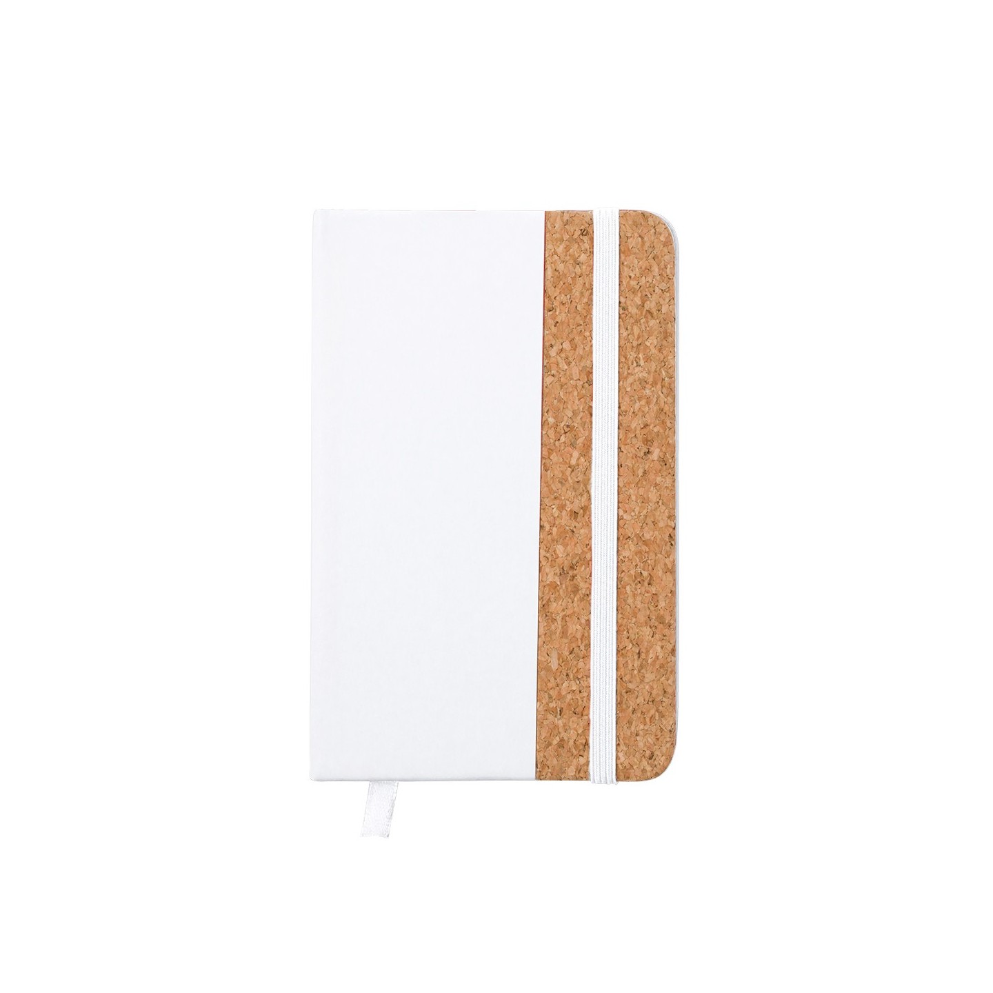 Bloc de notas con tapas rígidas elaboradas con suave corcho. Incluye 80 hojas lisas con elástico de sujeción y marcapáginas de tela a juego. Disponible en amplia gama de colores, con tacto exterior en combinación de corcho natural y polipiel. Presentado en bolsa individual.