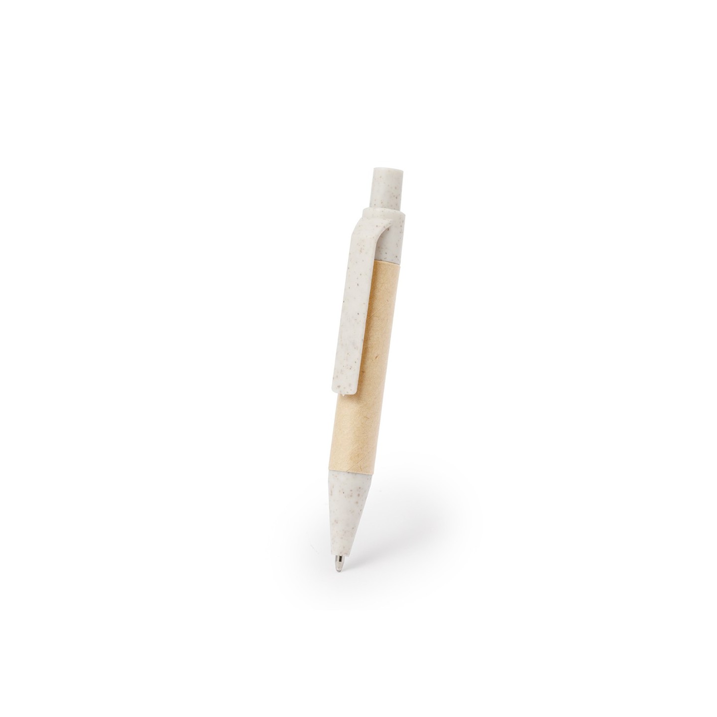 Para completar la experiencia, el Bloc Notas Wombax cuenta con un bolígrafo fabricado en cartón reciclado y caña de trigo, demostrando nuestro compromiso con la sostenibilidad en todos los aspectos del producto. Equipado con un mecanismo pulsador y tinta azul, este bolígrafo es una opción eco-friendly y funcional.