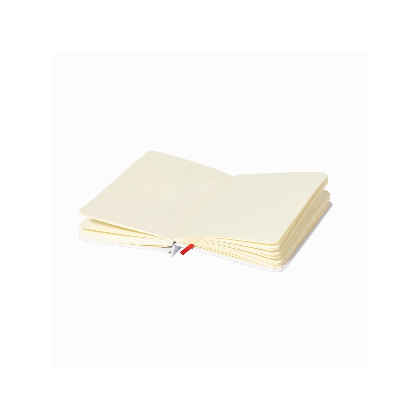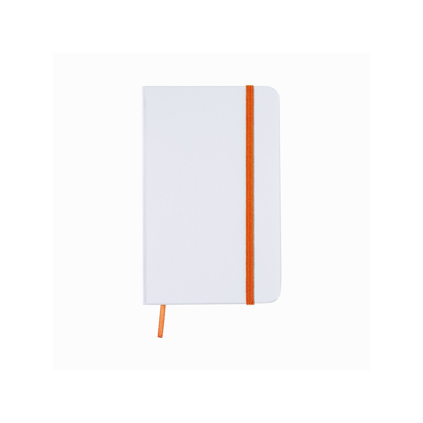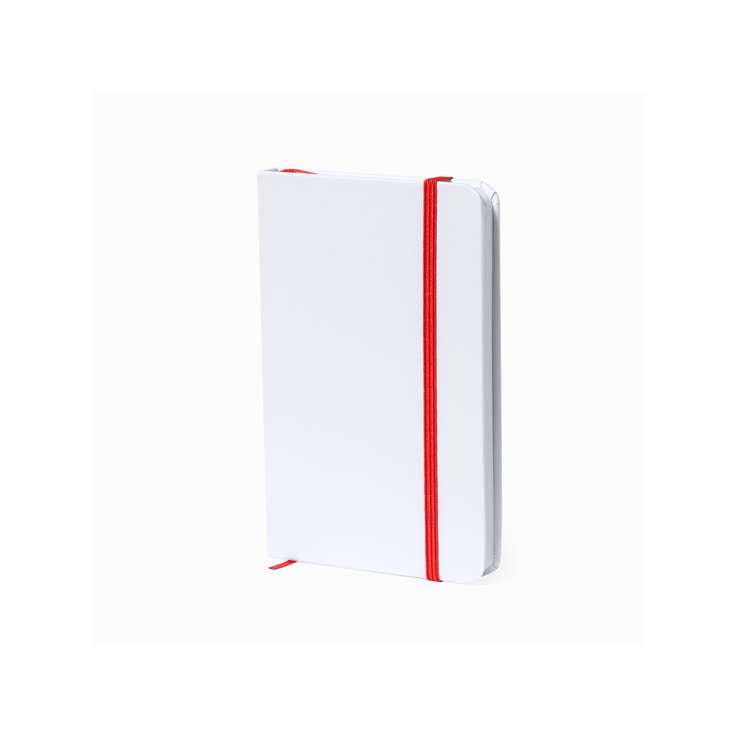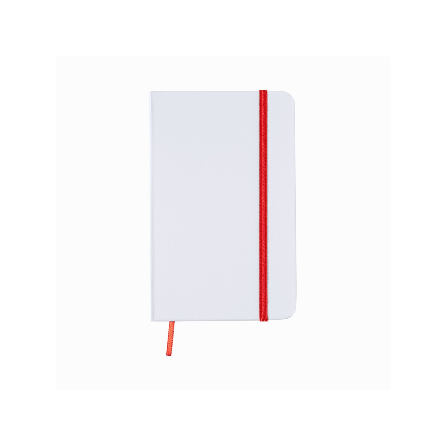 El Bloc Notas Yakis tiene tapas de cartón blanco resistente, 80 hojas lisas, elástico de sujeción y marcapáginas de tela. Calidad y estilo en un bloc personalizable.
