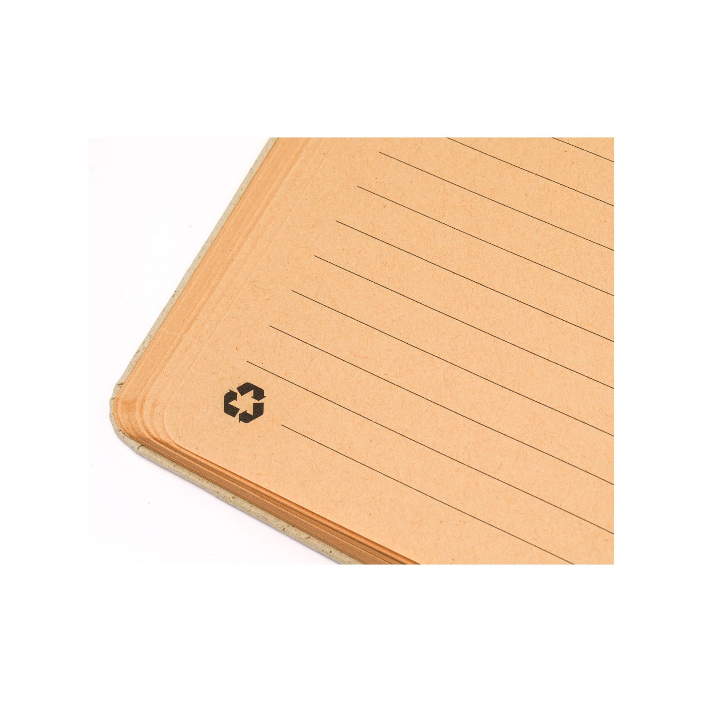 Lo más destacado de este bloc de notas es su material de fabricación: hierbas recicladas. El papel de hierba es una alternativa perfecta para reducir el impacto ambiental, gracias a su rápido crecimiento y baja demanda de recursos. Además, en su elaboración se combina un 50% de base de hierba con otros elementos ecológicos, como madera reciclada, asegurando así la sostenibilidad en su proceso de fabricación.