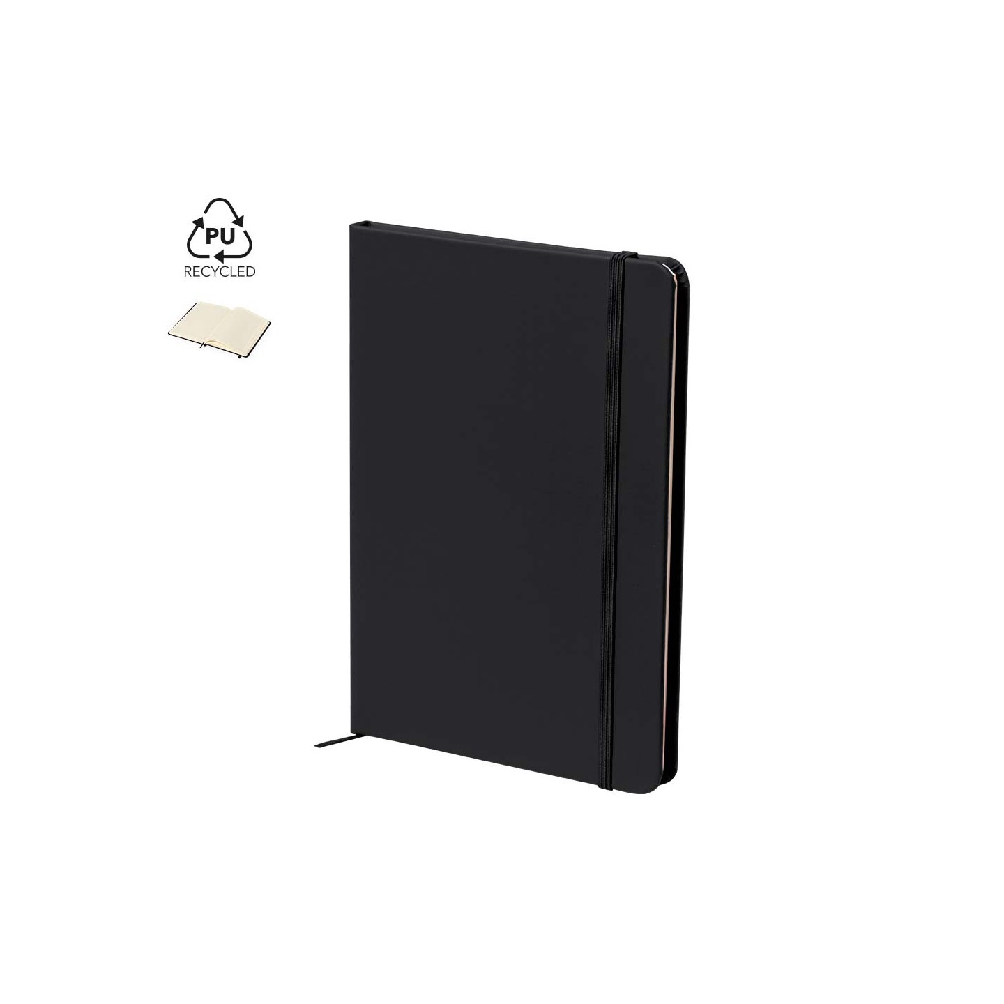 El Bloc de Notas Zimax es de polipiel reciclada, 100 hojas rayadas, elástico de cierre. Elegante, funcional y comprometido con la sostenibilidad.