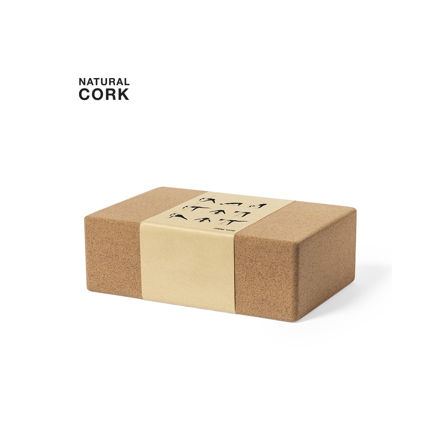 Bloque Yoga Natara: resistente corcho natural para yoga y actividades. Atractiva funda eco con ilustraciones. Mejora postura y equilibrio con estilo.