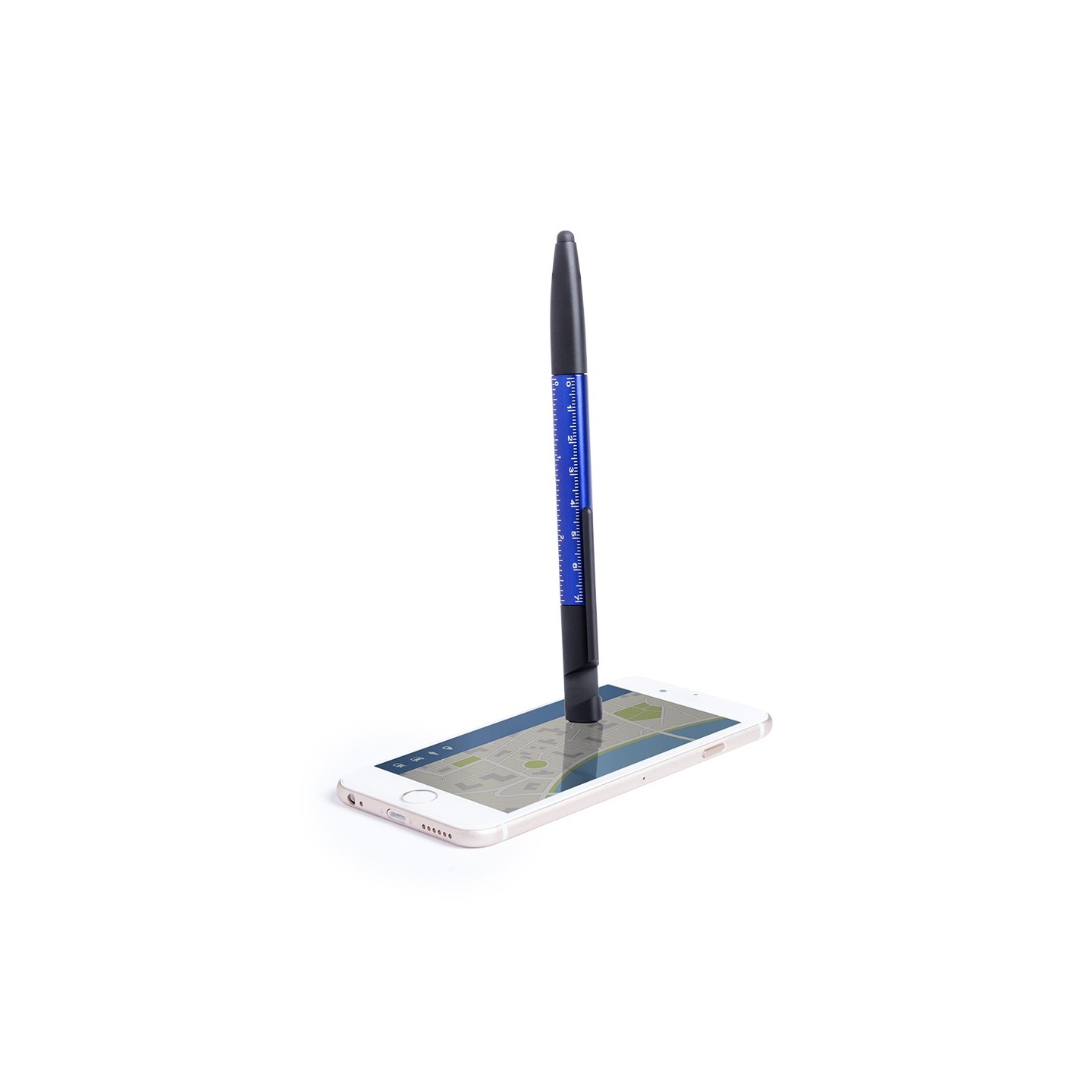 Este bolígrafo multifuncional está diseñado para brindarte conveniencia y eficiencia en un solo producto. Cuenta con un soporte para dispositivo móvil, lo que te permite tener tu teléfono siempre a la vista y facilita la visualización de contenido en reuniones o en tu escritorio.
