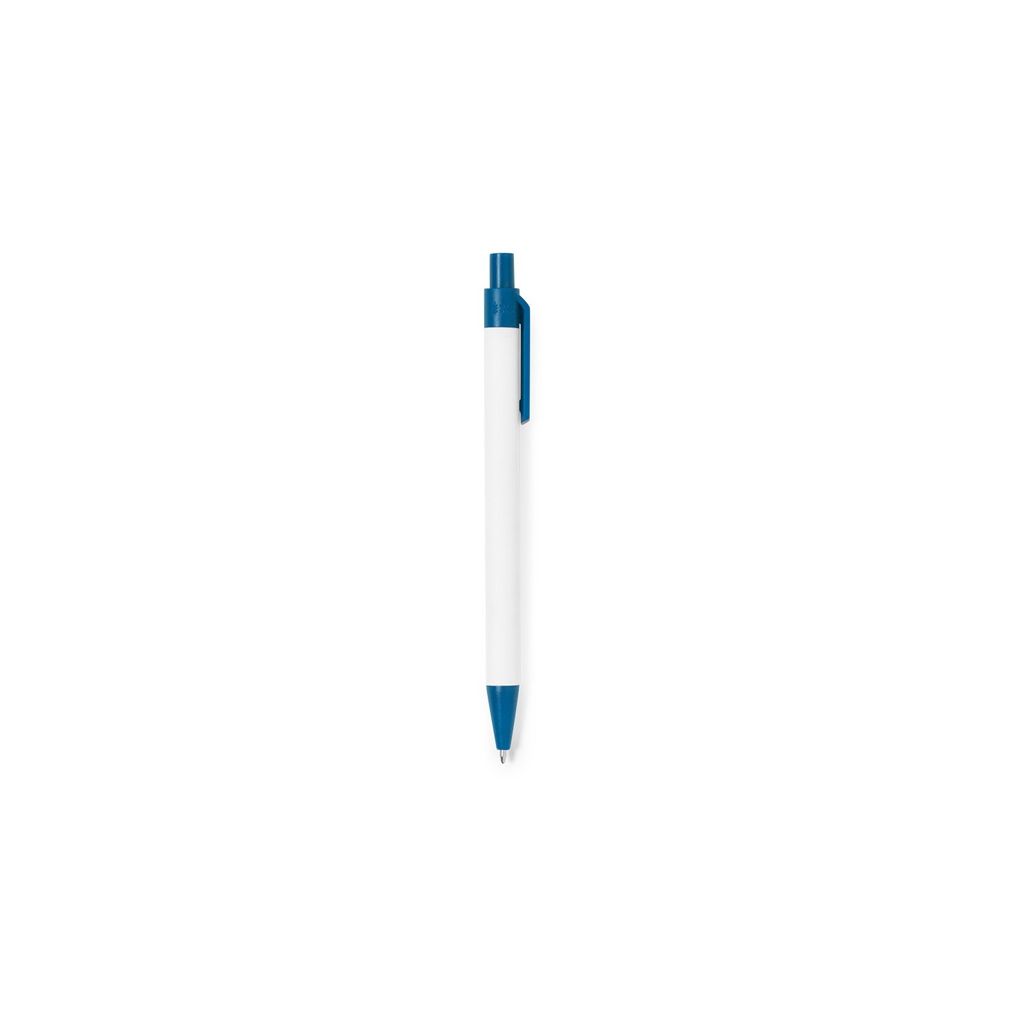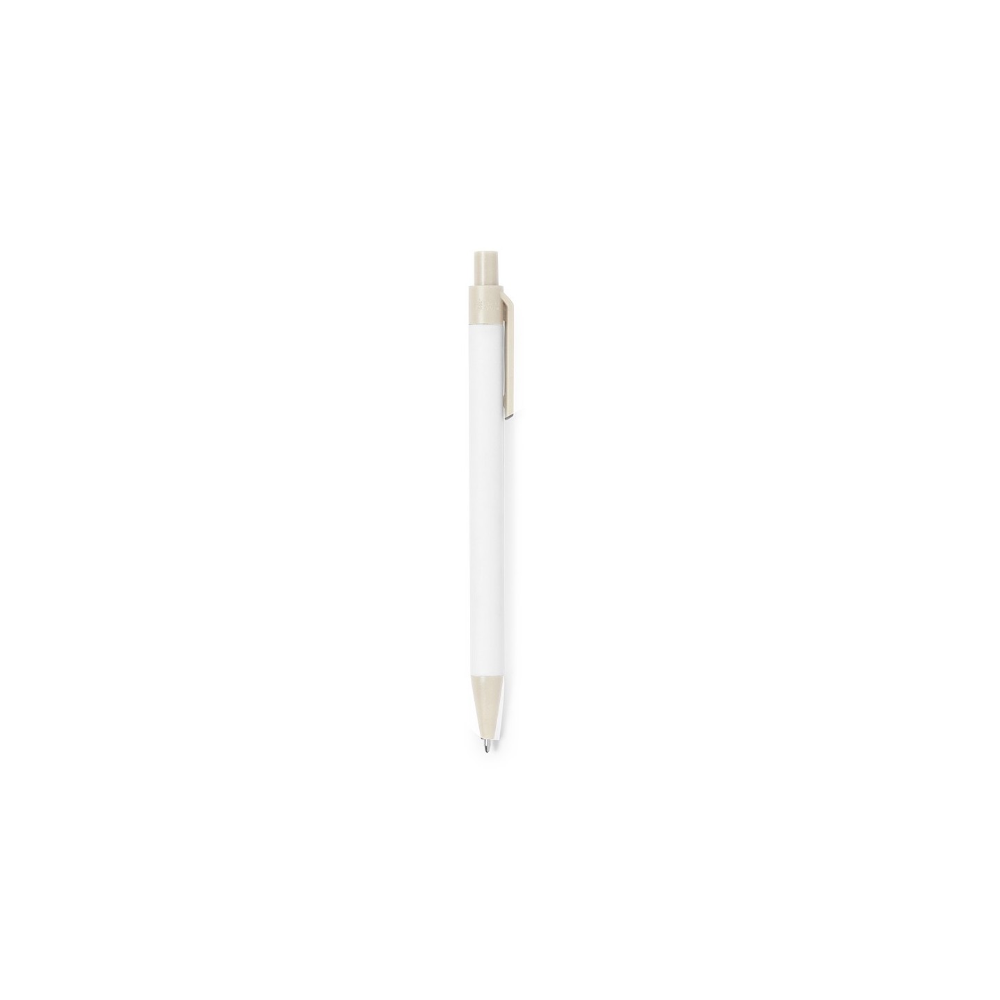 Este bolígrafo de mecanismo pulsador destaca por su cuerpo fabricado en cartón reciclado, mostrando un enfoque innovador en la reutilización de materiales. Su clip, punta y pulsador en caña de trigo refuerzan su compromiso con el uso de elementos naturales y su contribución a la reducción de emisiones contaminantes.