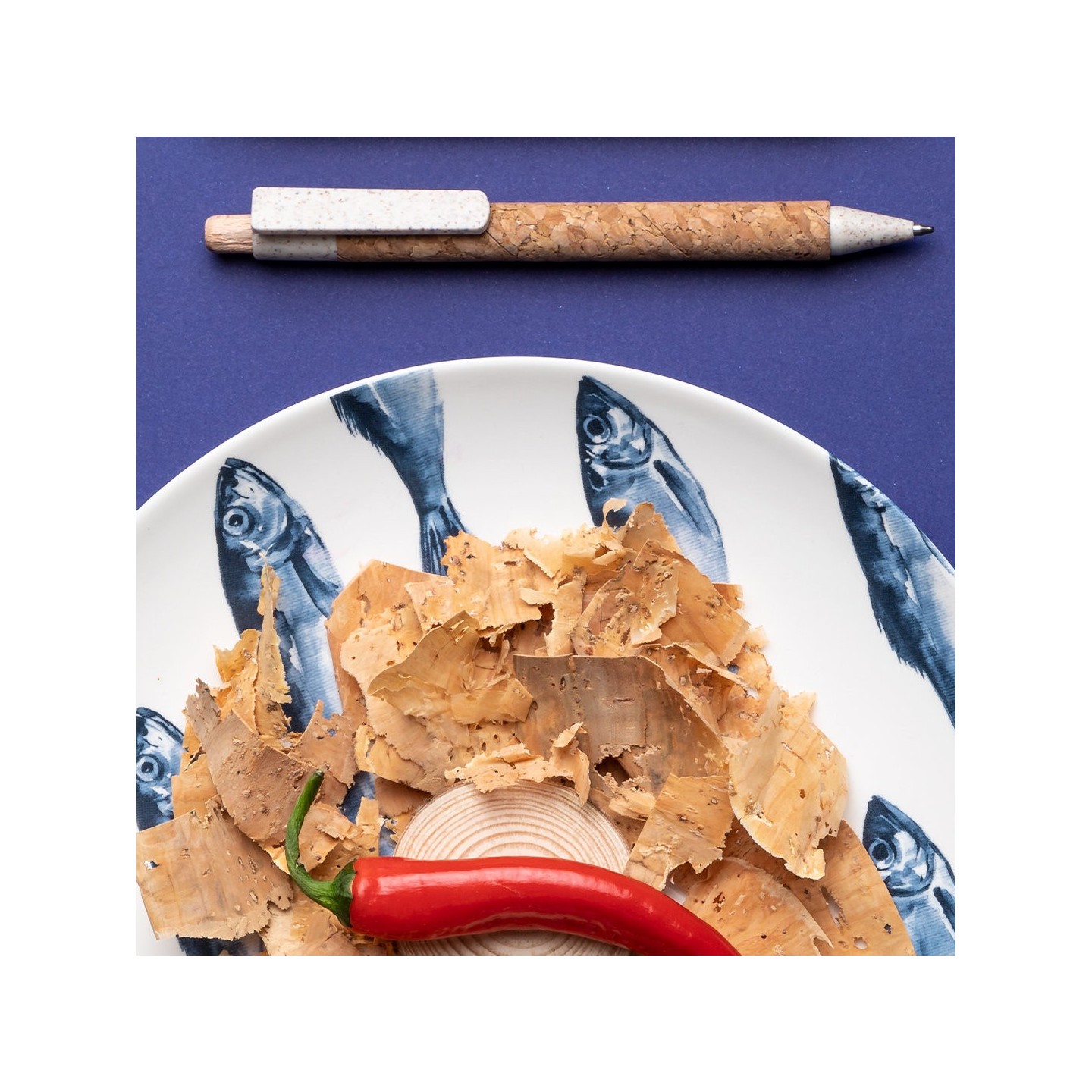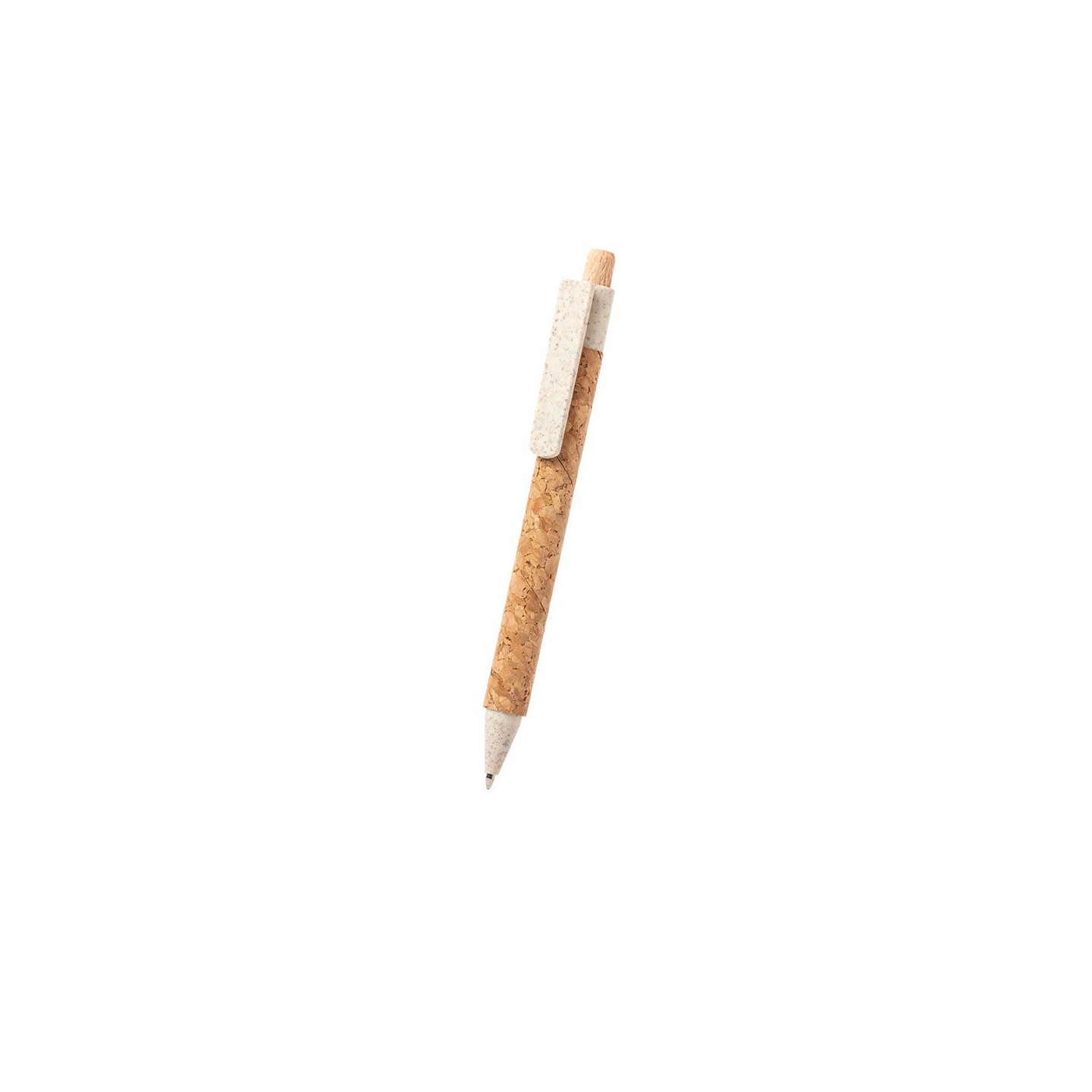 El Bolígrafo Clover es una opción eco-friendly y elegante. Su cuerpo de corcho y detalles en caña de trigo le dan un toque único. Además, su mecanismo pulsador y tinta azul lo hacen muy práctico.