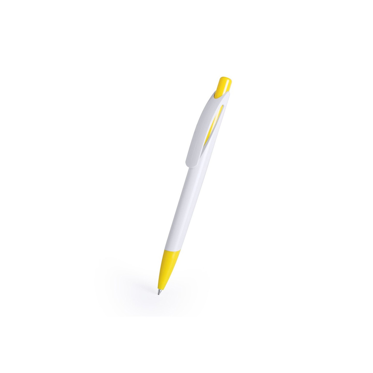 El Bolígrafo Hurban trae un diseño bicolor, cuerpo blanco sólido, clip curvado a juego. Escritura suave con tinta azul. Ideal para regalos personalizados y merchandising empresarial.