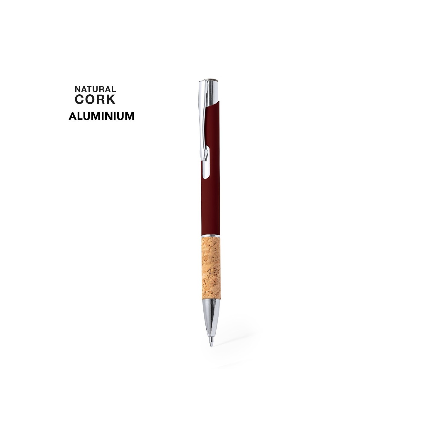 El Bolígrafo Logard es de aluminio, corcho, tinta azul y clip metálico. Presentado en bolsa reciclada. Estilo, funcionalidad y compromiso con la sostenibilidad.
