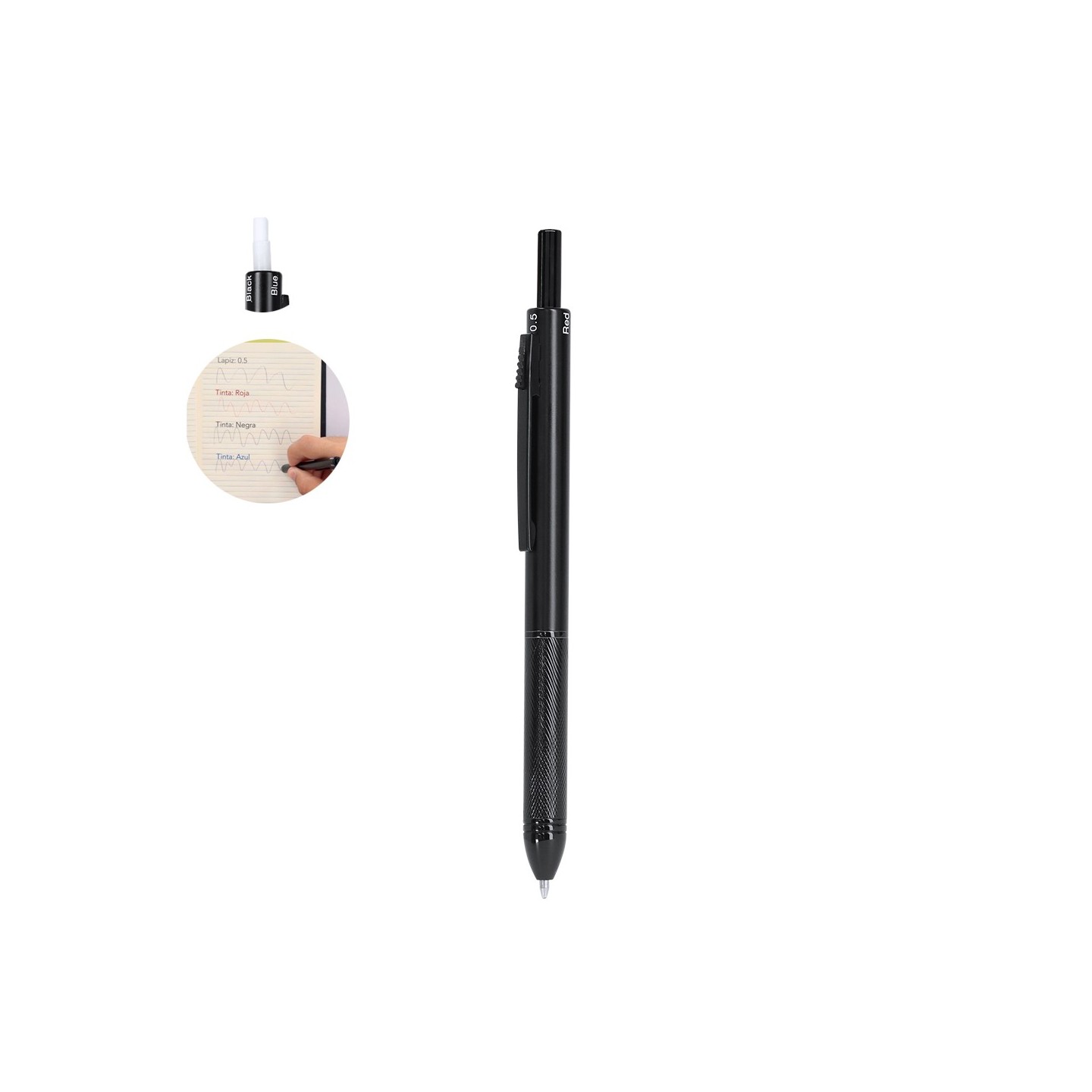 Descubre la versatilidad del Bolígrafo Portaminas 4 en 1 Tidio, una herramienta imprescindible para quienes buscan funcionalidad y estilo en su día a día. Con un ingenioso mecanismo de uso, este bolígrafo te permite seleccionar de manera fácil y rápida el color de la tinta que deseas utilizar, así como activar la función de portaminas.