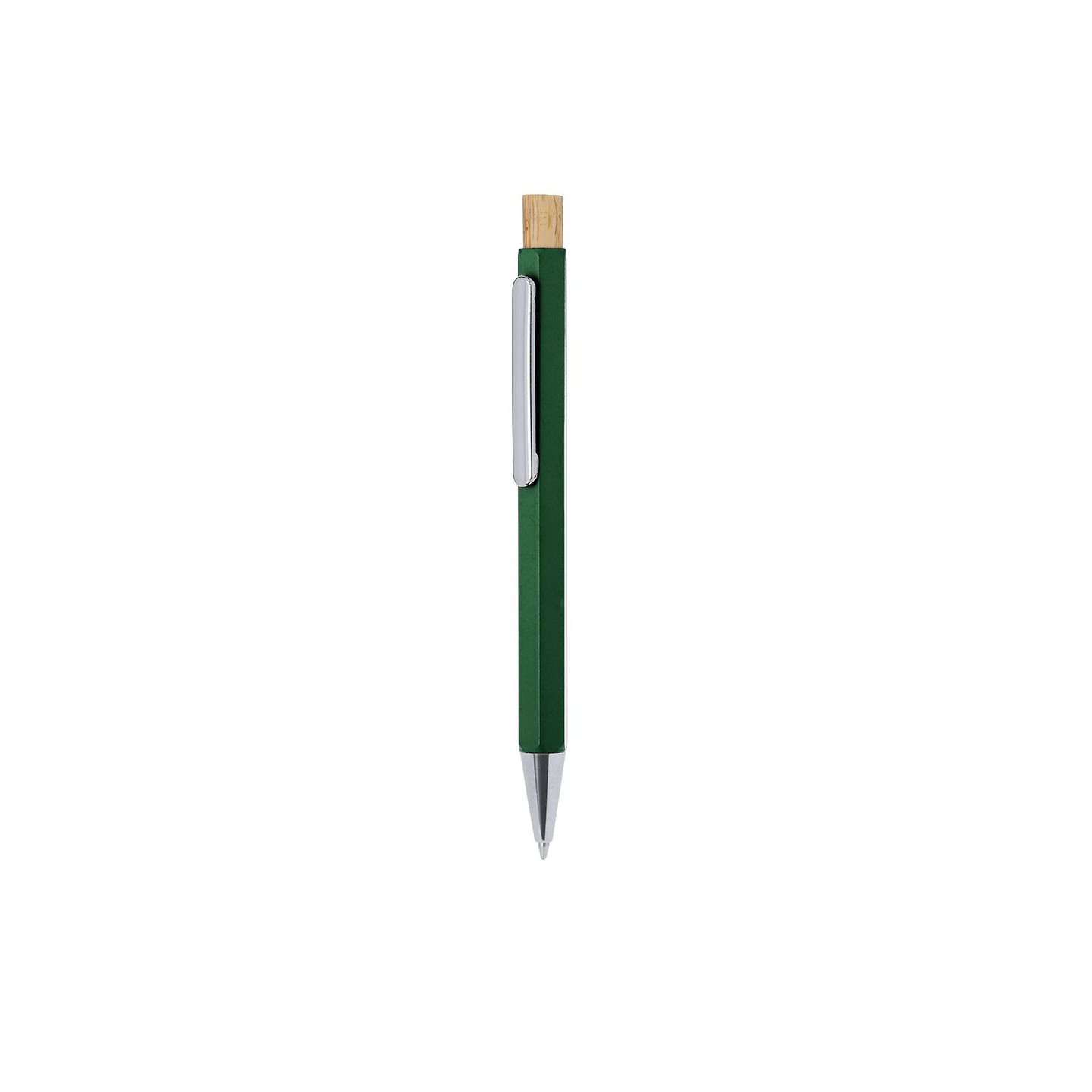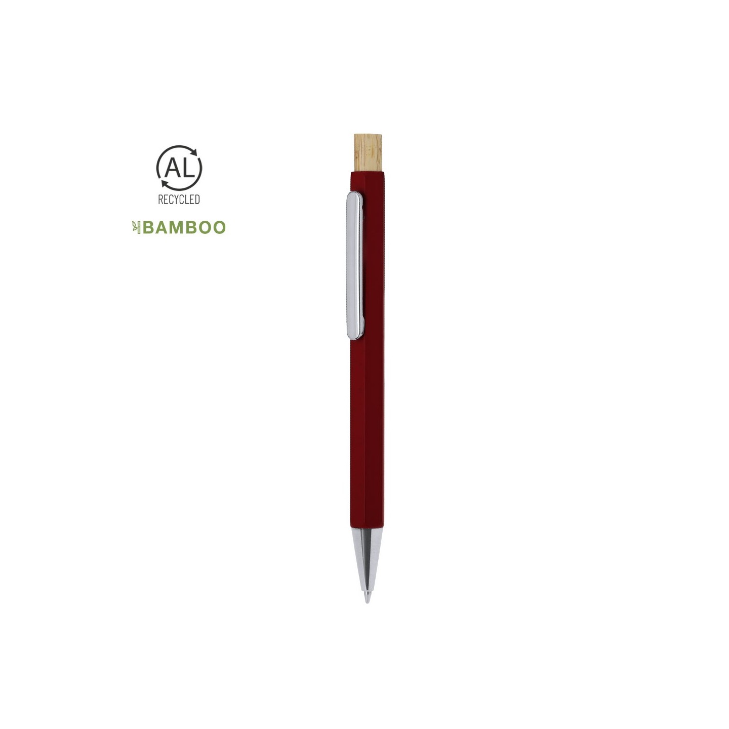 Bolígrafo elegante fabricado en Aluminio Reciclado y bambú. Con tinta azul y carga jumbo, personalizable con tu logotipo. Eco-friendly, ideal para merchandising corporativo.