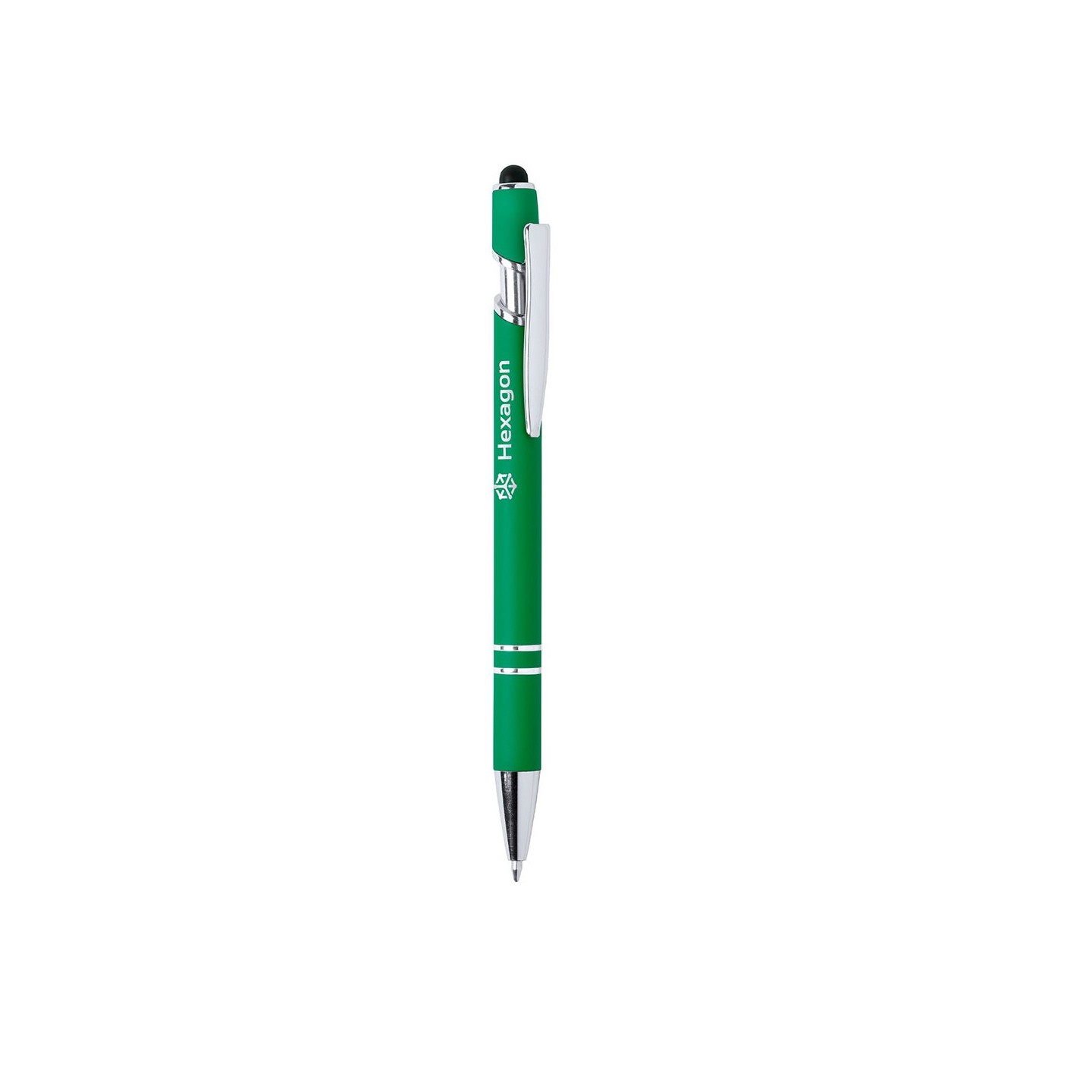 El cuerpo del bolígrafo está fabricado en aluminio con acabado goma, lo que le confiere un tacto suave y agradable al escribir. Además, este cuerpo ha sido especialmente diseñado para permitir el marcaje en láser, lo que te brinda la oportunidad de mostrar el logotipo de tu empresa en un tono plateado elegante y sofisticado.