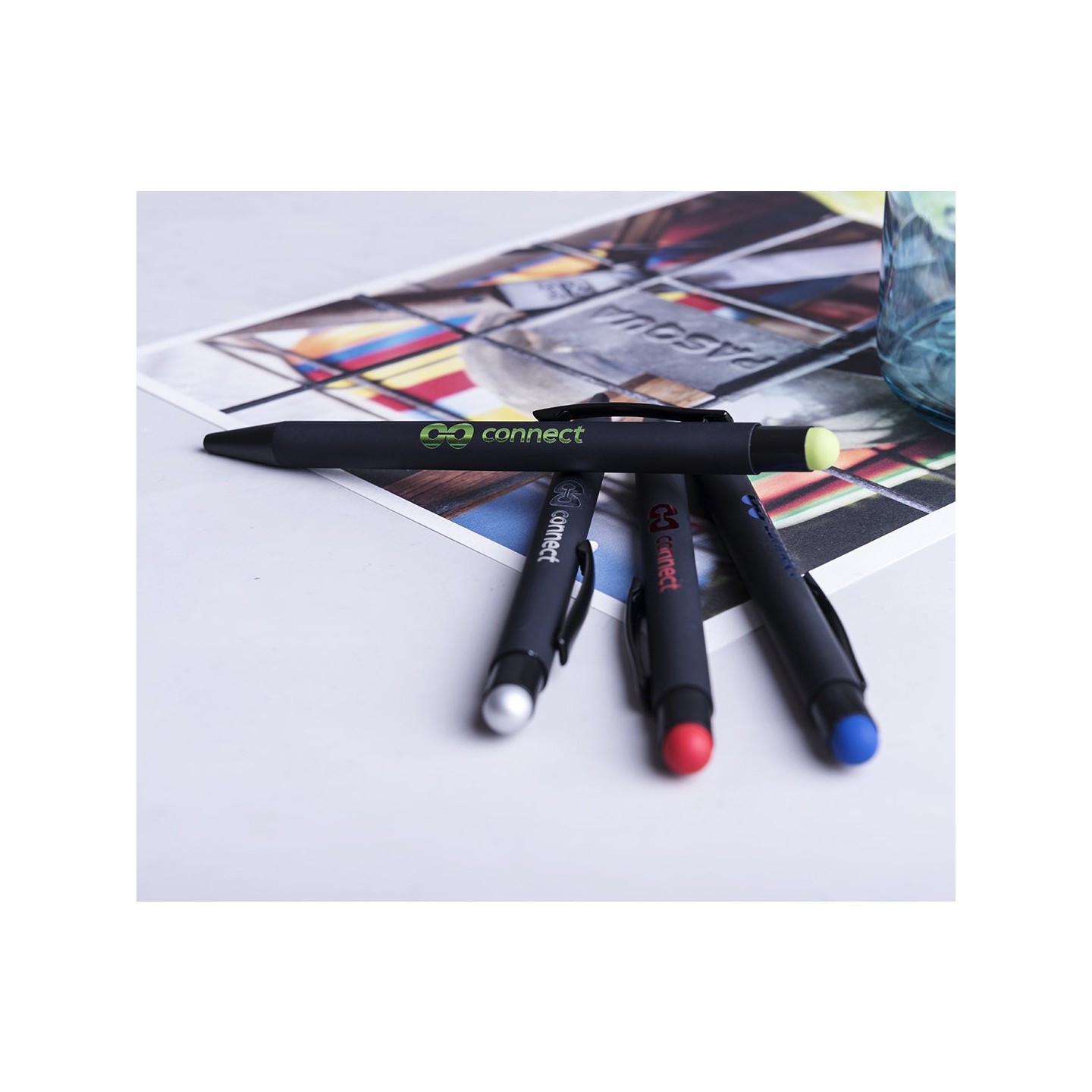 El bolígrafo puntero Yaret cuenta con un mecanismo giratorio que garantiza una experiencia de escritura suave y cómoda. Su cuerpo de acabado sólido en color negro le otorga un aspecto sofisticado y profesional, mientras que el pulsador está disponible en una variada gama de colores vibrantes para adaptarse a tus preferencias y estilo de marca.